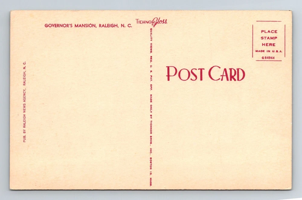 Raleigh NC-North Carolina, Governor's Mansion, Vintage Postcard