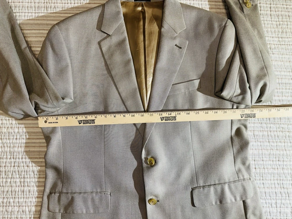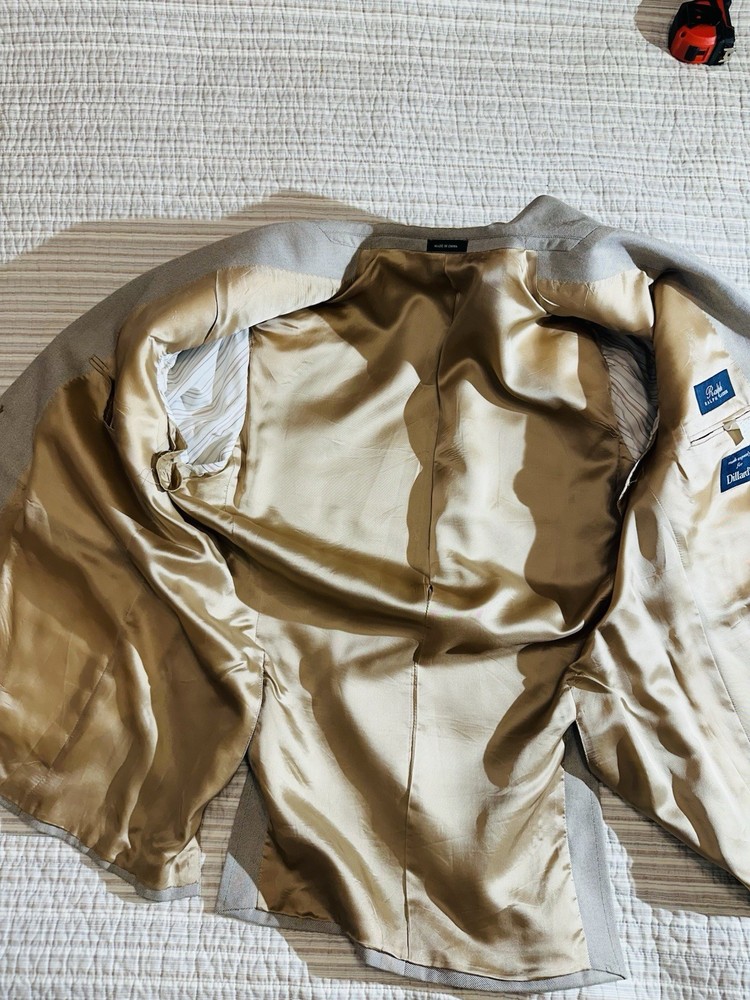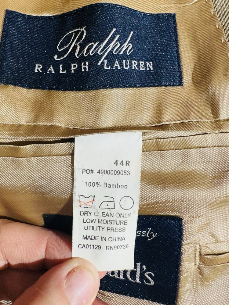 Crafted with the sophisticated gentleman in mind, the Ralph by Ralph Lauren Tan Sports Coat is a timeless addition to any wardrobe. Made from 100% bamboo, this size 44 regular jacket offers both comfort and durability. Its solid tan hue makes it versatile for various occasions, whether you're dressing for a casual day out or a business meeting. The coat features a classic notch lapel style and a two-button front that adds a touch of elegance to the overall design. Its regular fit ensures a flattering silhouette for a variety of body types. With its understated style and quality material, this sports coat is a staple piece that exudes Ralph Lauren's commitment to classic American style. * I do have pets and cannot guarantee no pet in here but do try my best