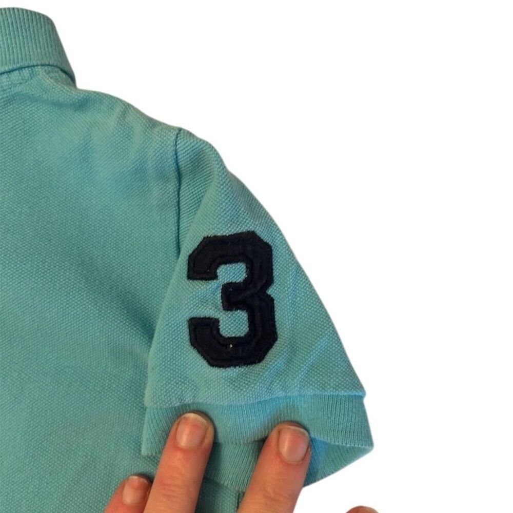 Ralph Lauren baby boys light blue short sleeve polo shirt. This classic polo features the iconic Big Pony logo embroidered in black on the chest and a black number '3' applique on the sleeve. Includes a two-button placket and a comfortable collar. Perfect for everyday wear, playdates, or a casual family outing. Department: Unisex Baby & Toddler Type: Polo Theme: Horse Sleeve Length: Short Sleeve Pattern: Solid Style: Basic Material: 100% Cotton Neckline: Collared Features: Breathable, Stretch, Logo Fit: Regular Closure: Button Accents: Embroidered, Logo, Button Fabric Type: Knit Season: Spring, Summer, Fall Occasion: Casual Keywords: Ralph Lauren Kids, Baby Polo, Designer Baby, Iconic Pony, Classic Style, Playdate Outfit, Casual Wear, Embroidered Logo, Applique Number, Short Sleeve, Summer Baby, Toddler Fashion All items come from a smoke free, pet friendly home. All of items unless NWT or Dry Clean Only are washed with Tide. We try our best to disclose any flaws with items, if we miss something please reach out and let us know. We offer combined shipping on all our items. We do take measurements of our clothing listed for sale. Please compare the measurements to something you already own.