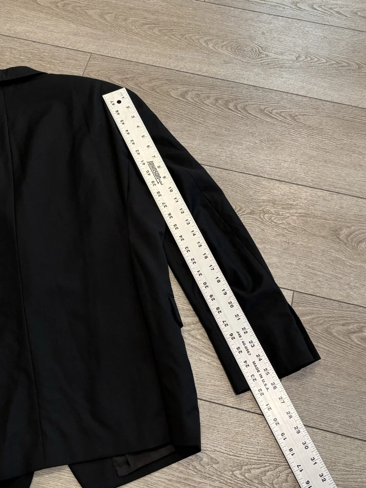 Gorgeous Giorgio Armani double breasted blazer in black. Shipped promptly, carefully packaged, arrived as described. Fits me like a glove. Thrilled to have it at a great value. Thank you so much to the seller!
