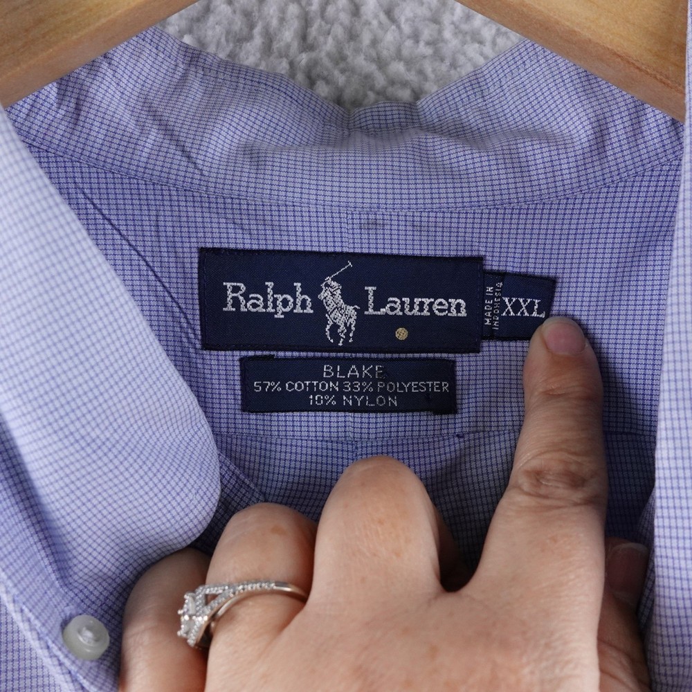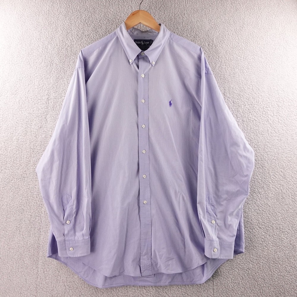 Occasion: Business, Casual, Workwear Brand: Ralph Lauren Features: Wrinkle Resistant Closure: Button Accents: Logo, Button Pattern: Check Top Cuff Style: Barrel Cuff Chest Size: 44 in Size: XXL Collar Style: Button-Down Sleeve Length: Long Sleeve Personalize: No Material: Cotton, Polyester, Nylon Handmade: No Size Type: Regular Color: Purple Type: Dress Shirt Fit: Classic Shirt Length: 32 in Fabric Type: Woven Department: Men Vintage: No Neckline: Collared