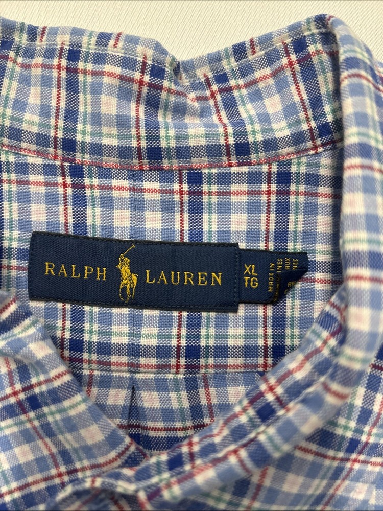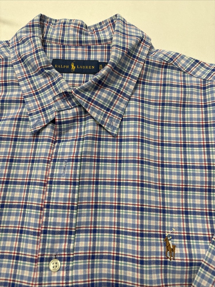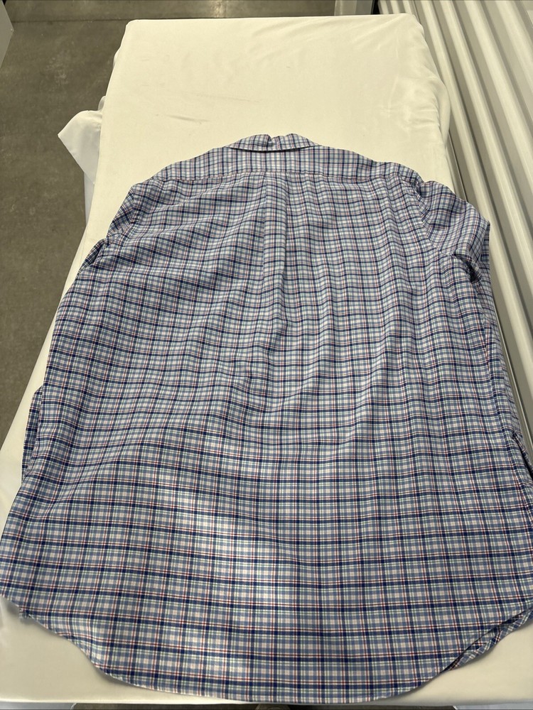 Elevate your wardrobe with the timeless sophistication of Polo Ralph Lauren Classic Fit Shirt. Designed for the discerning gentleman, this men's XL shirt features a stunning blue plaid pattern that embodies a preppy yet stylish aesthetic. The long sleeves, button-down collar, and classic fit silhouette offer a comfortable and flattering look for any occasion, from casual outings to more formal events. Crafted from breathable and lightweight cotton fabric, this shirt is ideal for all seasons, ensuring you stay comfortable whether it's winter or summer. The shirt also boasts exquisite embroidered accents and the iconic Polo Ralph Lauren Pony logo, adding a touch of designer appeal. Machine washable and easy to care for, this shirt is as practical as it is stylish. Box 2