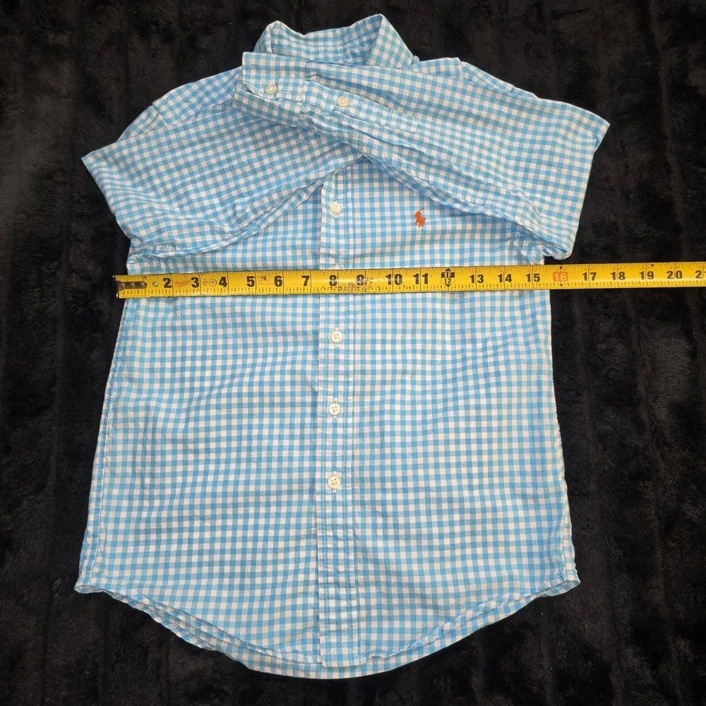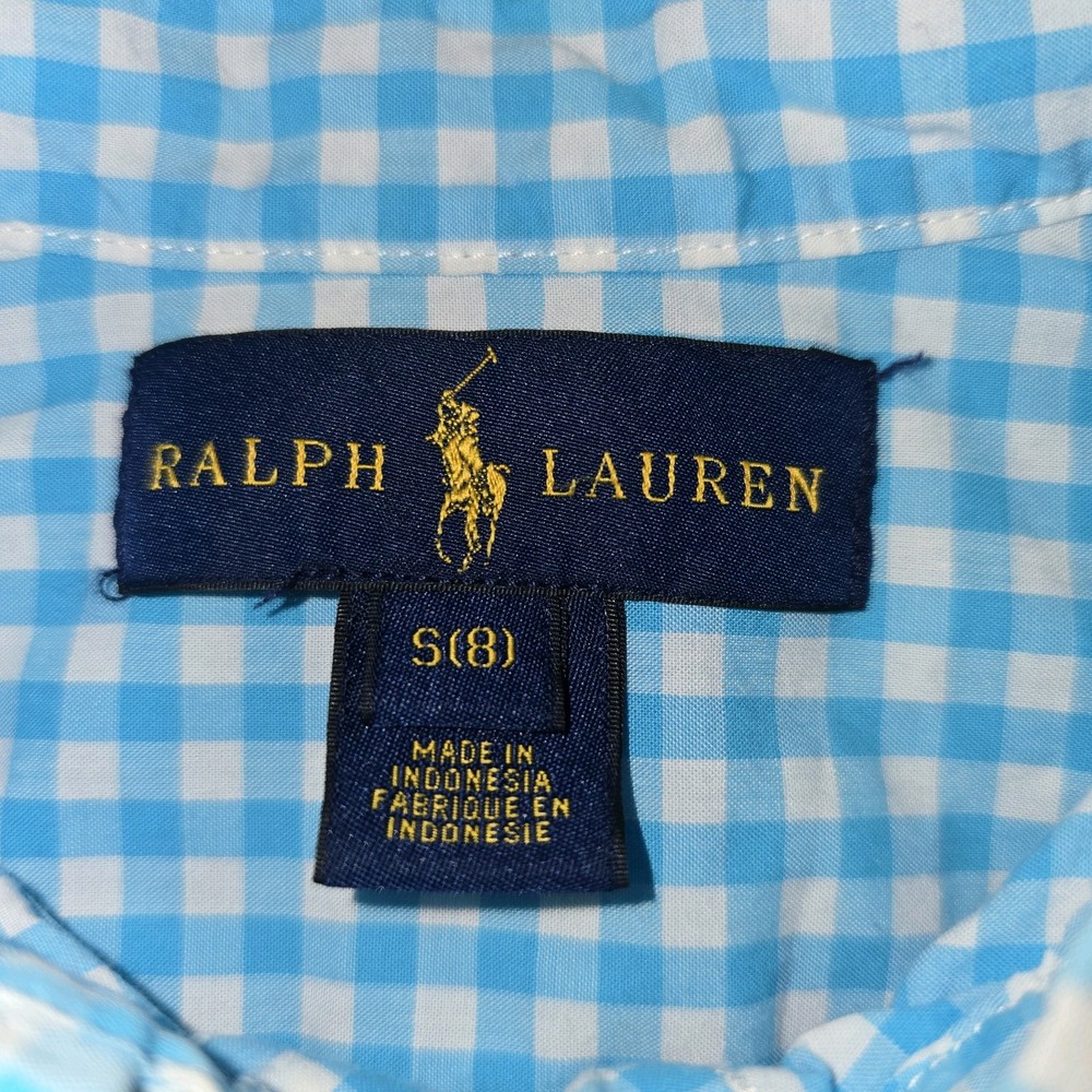 Ralph Lauren Boys Gingham Button Down Shirt Blue White Cotton Pony Logo Sz 8 SIZE: 8 COLOR: Blue White MATERIAL: 100% Cotton CONDITION: Pre-Owned in good condition. MEASURE APPROXIMATELY Pit to Pit: 15.5 in Length: 22.0 in Sleeve Length: 19.0 in 💗Note: Pre-owned in excellent condition. Made from 100% cotton for comfort and breathability. Classic Ralph Lauren gingham button-down shirt featuring the iconic embroidered pony logo. Measurements were taken on a flat surface and are approximate. Please review all photos carefully as they are part of the description. Feel free to ask any questions.