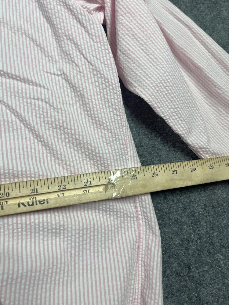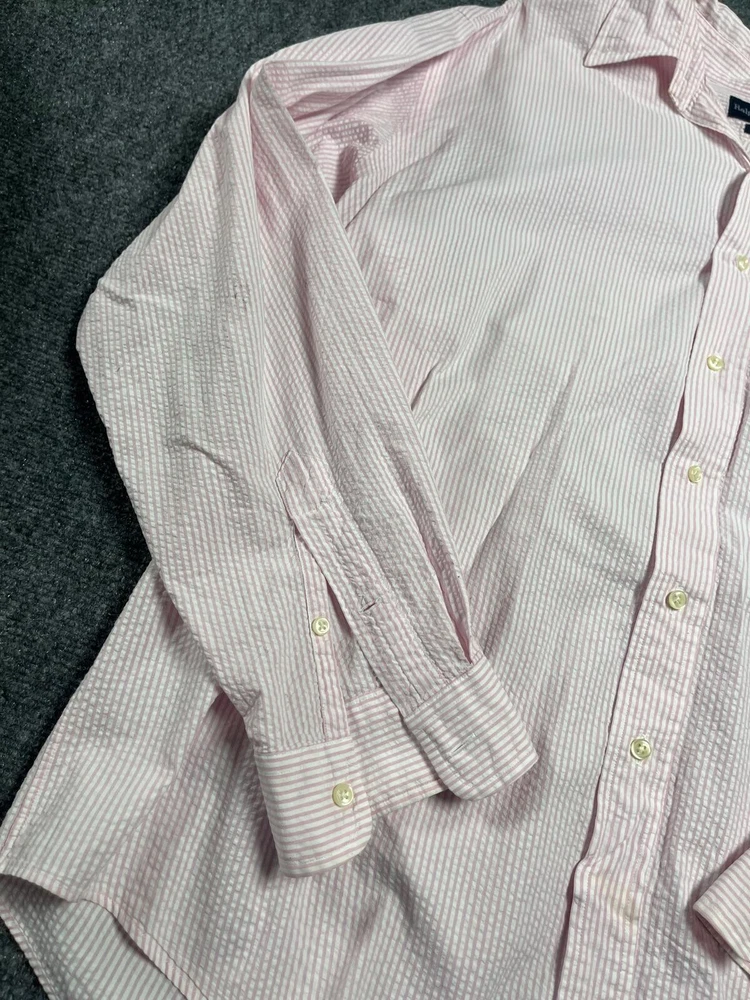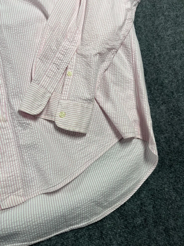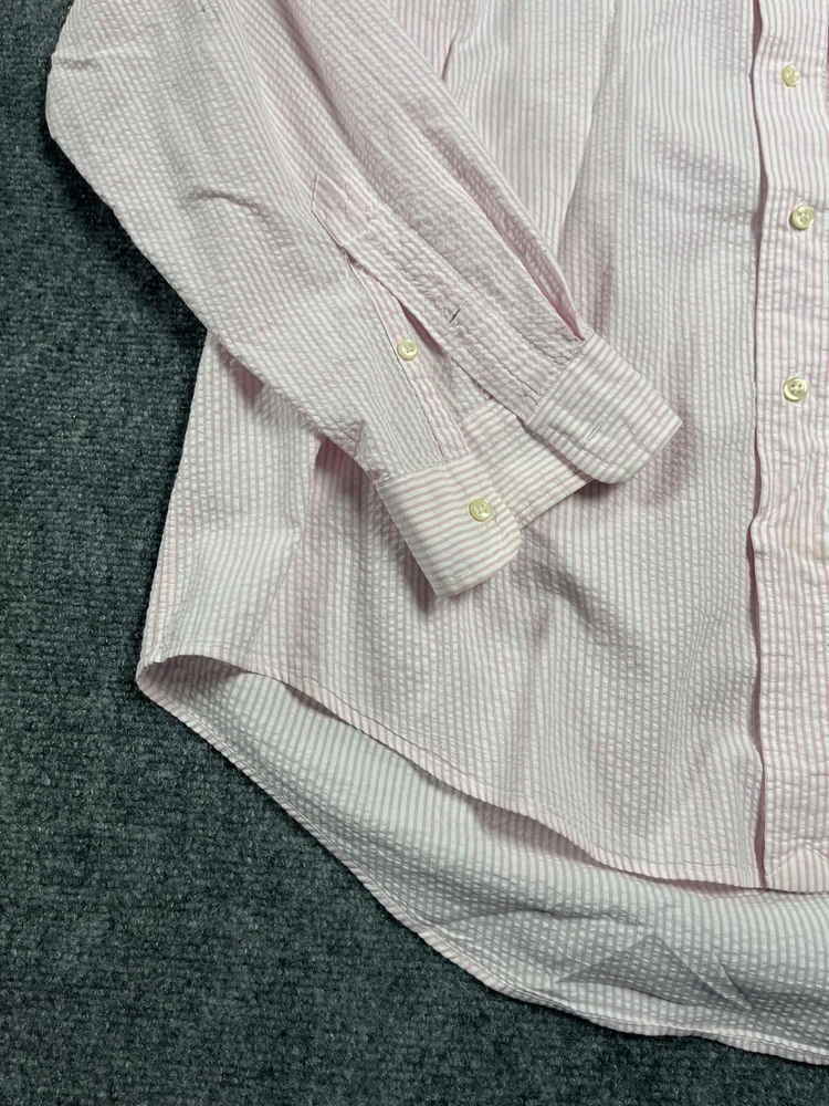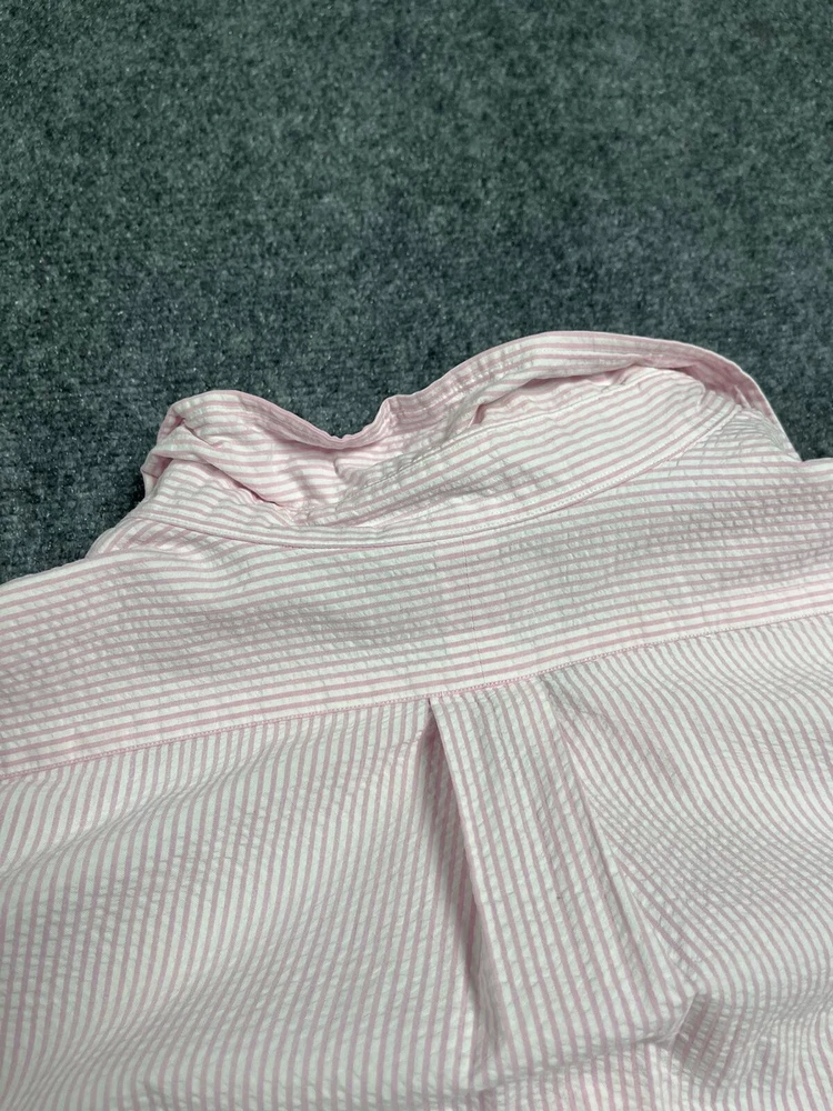 This Ralph Lauren button-up shirt is a must-have for any fashion-forward man. The classic fit and colorful striped pattern make it perfect for any occasion, whether it's a casual day out or a business meeting. The shirt features long sleeves, a collared neckline, and button closure for a sophisticated look. Made of lightweight and easy-care cotton material, this shirt is machine washable for convenience. The shirt also boasts embroidered accents and a button-down collar style for added style. Available in XL size and chest size of 50 inches, this shirt is perfect for men who want to look and feel their best.
