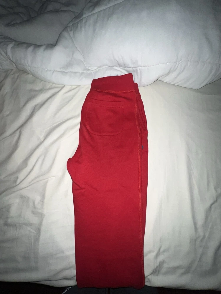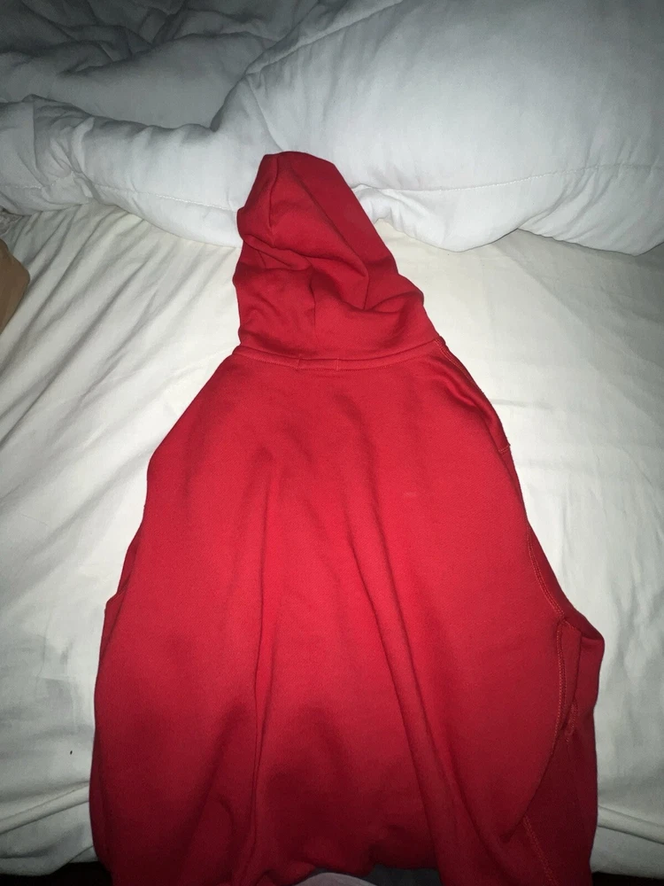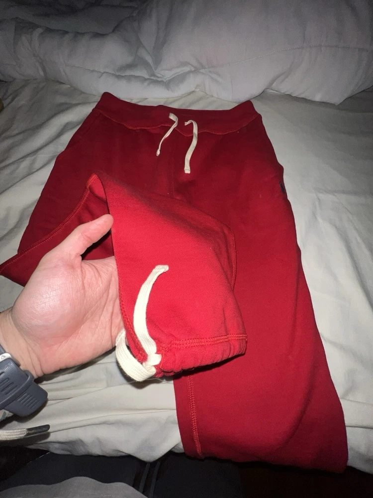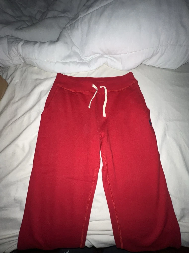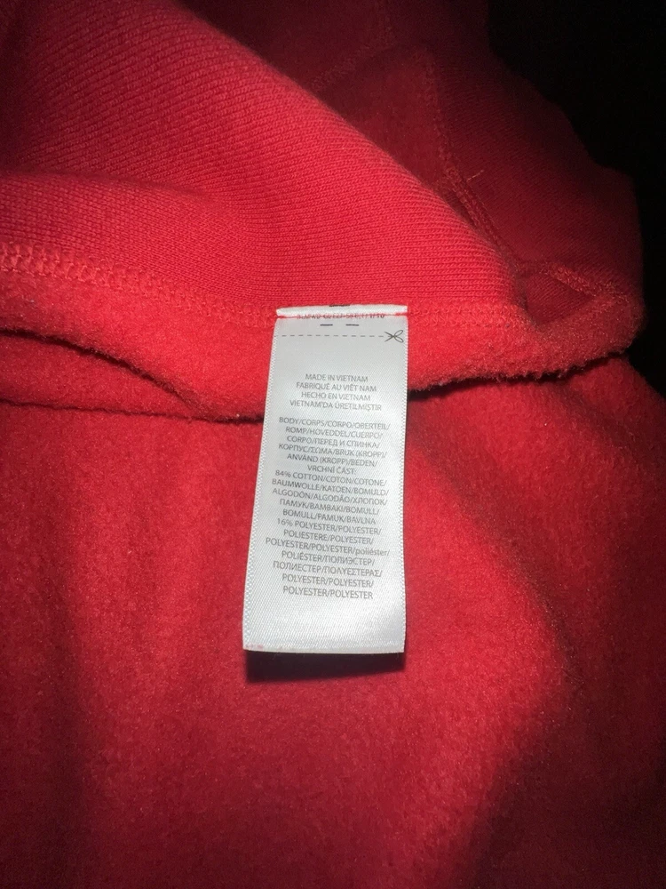 Elevate your style with this striking Ralph Lauren Denim hoodie in red. Crafted with high-quality fleece fabric, this hoodie is perfect for any occasion. It features a full-zip closure and is lined for added comfort. The hoodie is available in size L and comes with a matching pair of pants in size S.