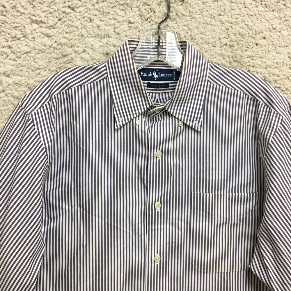 Ralph Lauren Dress Shirt 15.5 Adult Purple Striped Button Down Long Sleeve Mens WE SHIP ITEMS DAILY, SO EXPECT TO RECEIVE YOUR ITEMS FAST. YES, WE COMBINE SHIPPING !!! Measurements: Chest (pit to pit) / Length (collar to end) Measured flat in inches. Please, See Pictures for Measurements. PLEASE NOTE : Please look at the measurements before purchasing. If you are not sure about the size, flat lay a similar item of your own and measure that item to compare with our measurements. We do accept returns within 60 days . Please note, the item must be returned in the exact same condition as it was received. The Seller pays return shipping if the item does not fit. We request that you select "Item does not fit" when returning an item that does not fit. Thank You! Don't forget to check out Our Other listings. Thanks and have a great day.