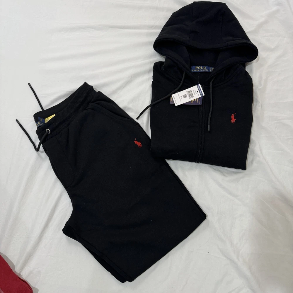 Elevate your casual wardrobe with the Polo Ralph Lauren Fleece Tracksuit, crafted for comfort and style. Made from a premium cotton blend, this tracksuit features a soft fleece interior, ensuring warmth and coziness for every season. The sleek black color is complemented by bold red embroidery of the iconic Polo Ralph Lauren logo, adding a pop of contrast and a touch of sophistication. Perfect for lounging or a laid-back outing, this tracksuit includes a full-zip hoodie with adjustable drawstrings and matching pants with an elastic waistband for a customizable fit. Whether you're relaxing at home or stepping out, the Polo Ralph Lauren Fleece Tracksuit is the ideal blend of luxury, comfort, and performance. Fabric : Cotton blend fleece for a soft, warm feel Color : Classic black with red embroidered logo Design : Full-zip hoodie with adjustable drawstrings, elastic waistband pants Fit : Relaxed and comfortable for all-day wear Style : Timeless Polo Ralph Lauren logo embroidery Upgrade your athleisure game with this must-have tracksuit that offers both premium quality and standout style.