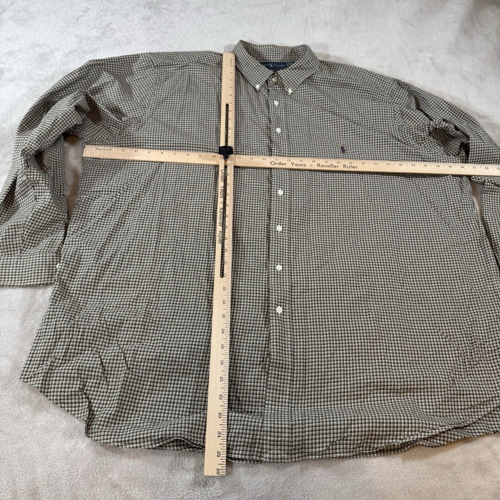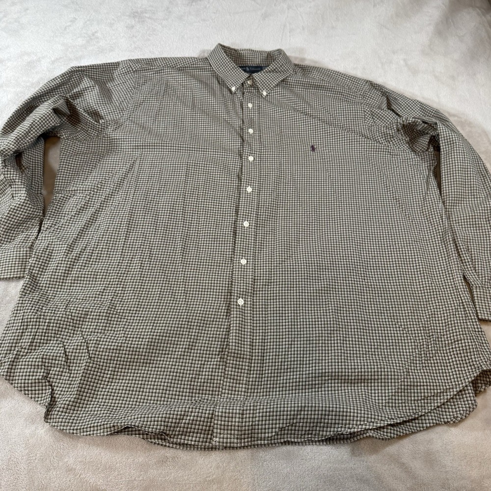 Crafted for the discerning gentleman, this Ralph Lauren Classic Fit men's shirt offers a timeless wardrobe essential with its green plaid poplin fabric. The button-down collar and long sleeves provide a polished look, perfect for an array of casual occasions. Its breathable and easy-care features make it a versatile choice for every season, ensuring comfort without compromising on style. Designed to cater to the big and tall gentleman, this 3XLT size shirt embodies a preppy aesthetic with its subtle logo accent and classic fit. Machine washable for convenient care, it is a practical addition to any discerning man's collection. The shirt's stretch fabric ensures a comfortable fit, while the woven cotton material promises durability and a soft touch against the skin.