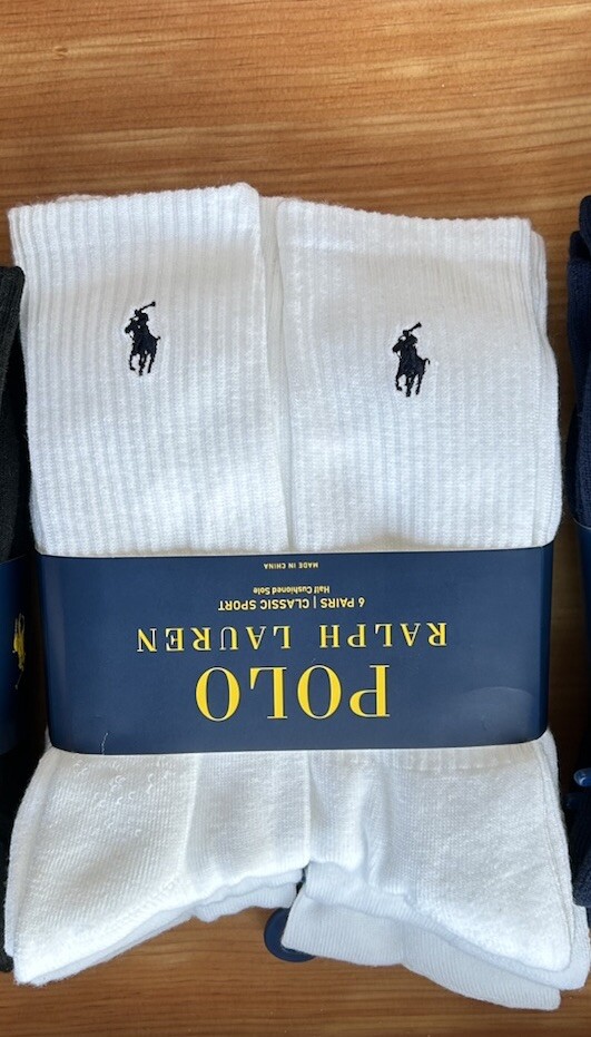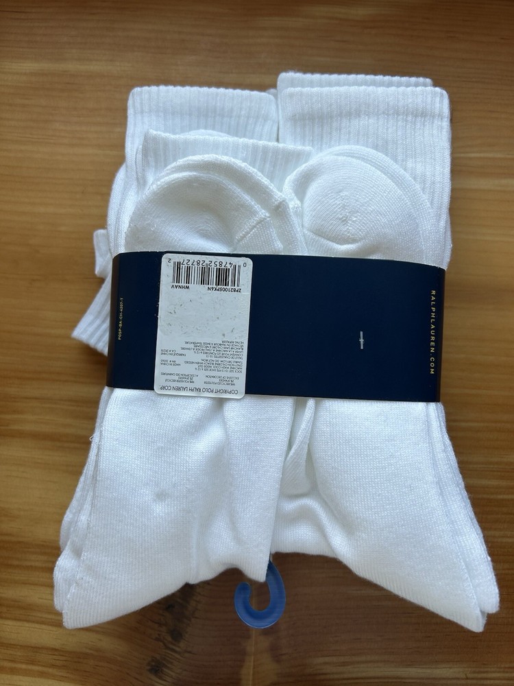 Polo Ralph Lauren Men's White Classic Sport Crew Socks 6-Pack Blue Pony (10-13). Condition is New with tags. Shipped with USPS Ground Advantage.
