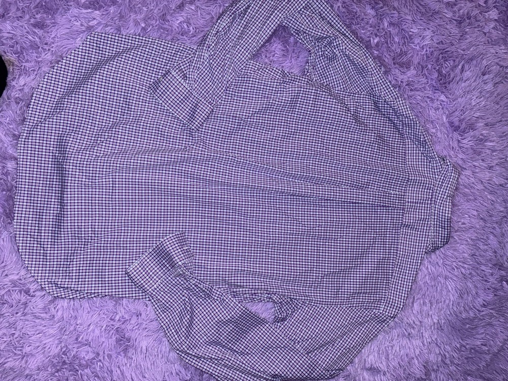 The Ralph Lauren Men's Dress Shirt in size L features a stylish purple and white check pattern with a classic collared neckline and button-down closure. Made from woven fabric, this shirt is designed for a regular fit and comes with the iconic Ralph Lauren logo accents. The long sleeves and barrel cuff style add to the sophistication of this dress shirt, making it a versatile and stylish addition to any man's wardrobe. Would be perfect for Easter! Lightweight material.