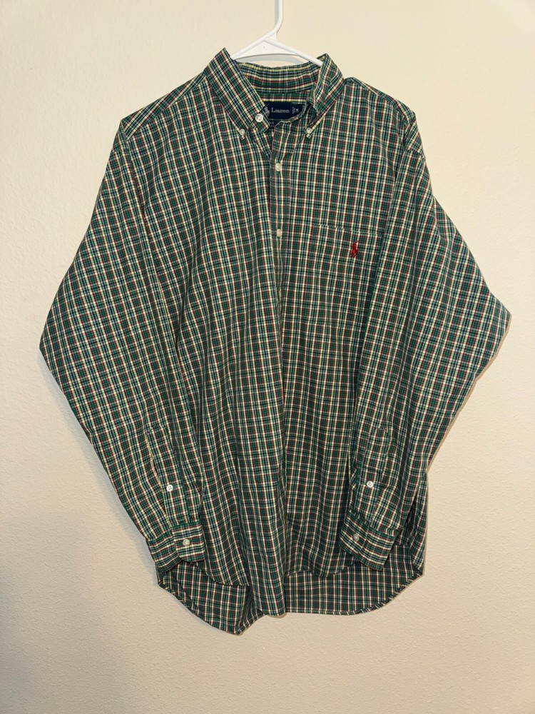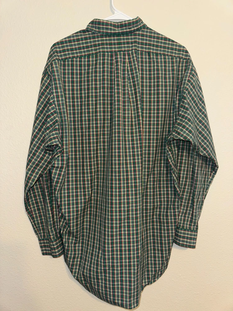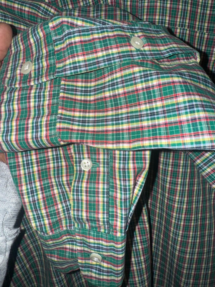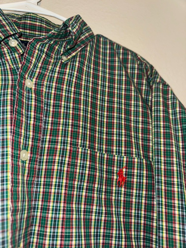 This Polo Ralph Lauren button-up is vibrant and stylish, with no missing buttons and in flawless condition. The colors pop beautifully, and the fit is classic yet modern. Great quality fabric that feels comfortable and looks sharp—definitely a wardrobe staple worth having!