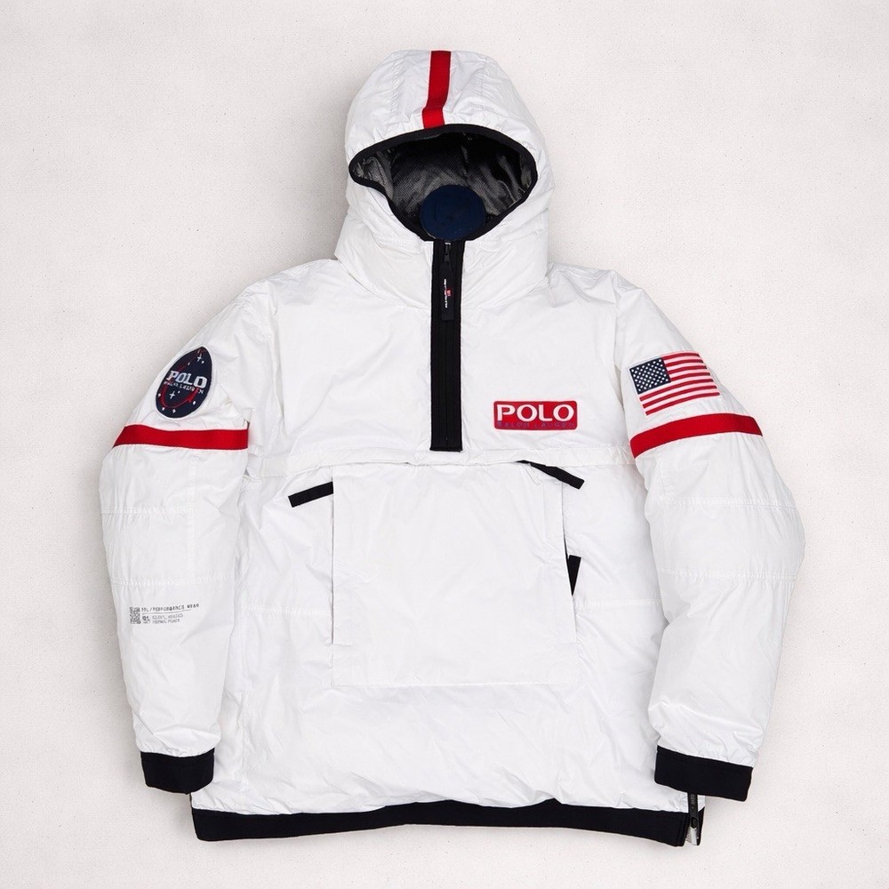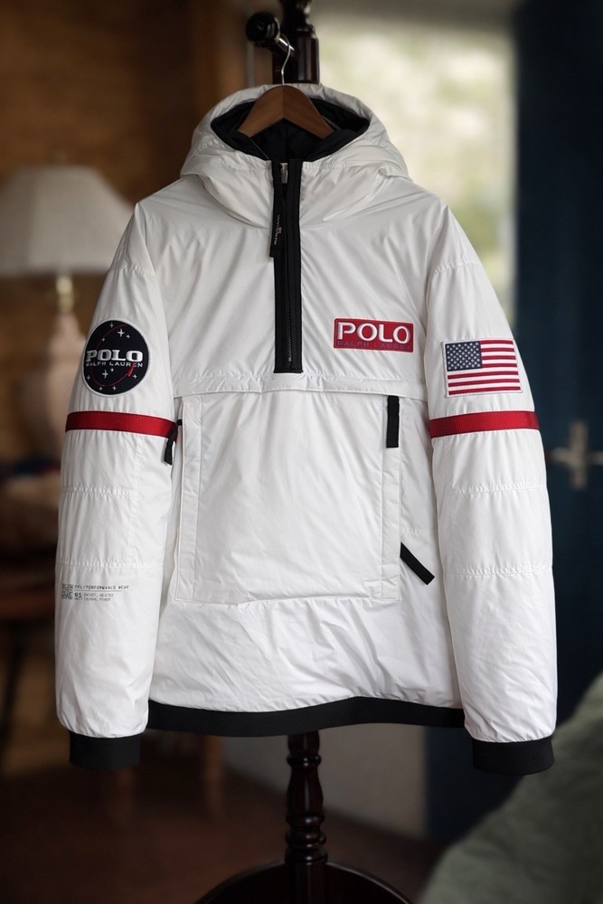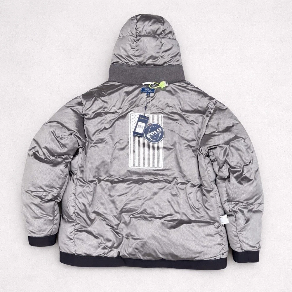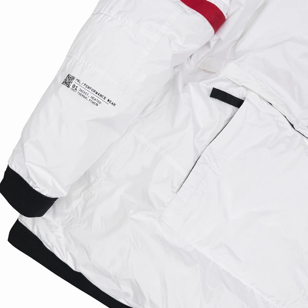 A rare, limited-edition Polo 11 RL Heat jacket, directly inspired by one of Ralph Lauren’s most iconic 1990s designs, combining classic Polo aesthetics with advanced wearable technology. This jacket features RL Heat, Polo Ralph Lauren’s proprietary onboard heating system, using ultra-light, fully flexible carbon and silver ink technology to deliver up to 11 hours of adjustable warmth. Heat levels are controlled in real time via the exclusive RL Heat app (available on iOS and Android) and powered by a Polo-branded Mophie battery, which is included. Filled with ethically sourced 750-fill-power down for natural insulation and finished with a water-repellent ripstop shell, this piece is both functional and collectible. ⸻ Condition • Pre-Owned with original tags • Includes one original Polo-branded Mophie battery pack Details & Features • Limited-edition Polo 11 RL Heat model • RL Heat app–controlled warming system • Up to 11 hours of heat • Water- and wind-repellent • Hood with fleece-lined collar • Half-zip placket with “Polo Ralph Lauren” zip pulls • Long sleeves with neoprene cuffs • American flag patch at left sleeve • “Polo Ralph Lauren” patches at left chest and right sleeve • Kangaroo pocket with zip closures (sides & top) • Neoprene hem • Zip vent along left side • American flag print at interior • Fully lined and filled ⸻ Materials • Shell: 100% polyester • Lining: 100% nylon • Fill: 90% white duck down, 10% white duck feathers • 750 fill power (high-loft, premium insulation) • Spot clean only ⸻ Size & Measurements (lying flat, approx.) • Size: XXL • Shoulder (seam to seam): 24 in • Chest (pit to pit): 31.5 in • Sleeve (shoulder seam to cuff): 27 in • Back length (collar to hem): 32.5 in ⸻ Notes • Ideal for collectors of Ralph Lauren / Polo / RL Heat pieces • Limited production, no longer available in retail • Please review all photos and measurements carefully