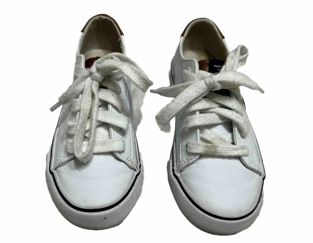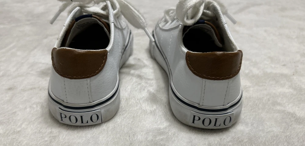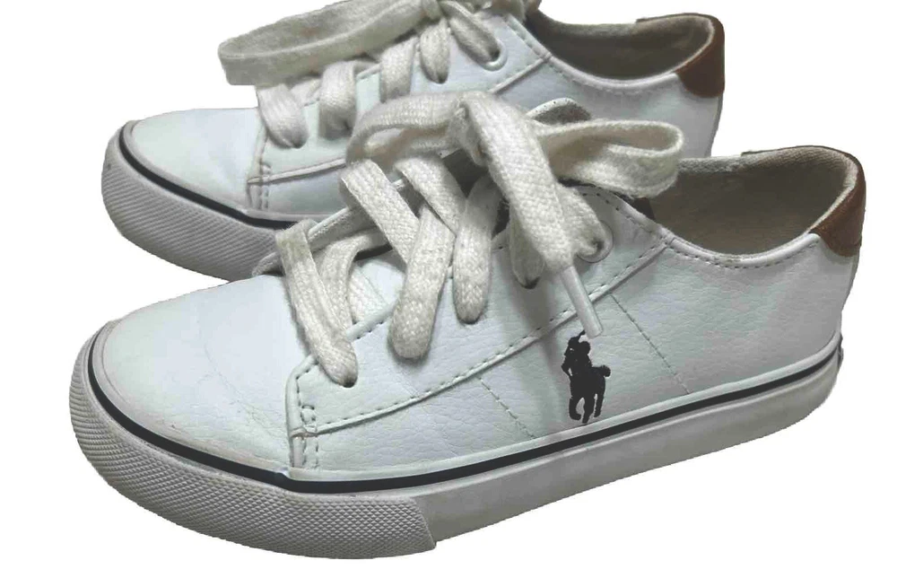 These Polo Ralph Lauren sneakers are a classic addition to any kid's shoe collection. With a round toe and lace-up closure, they provide both comfort and style for any occasion – whether it's active play or casual wear. The white fabric upper features the iconic embroidered pony for a touch of sophistication, while the rubber outsole ensures reliable traction. Perfect for walking and school activities, these unisex kids' shoes come in size 11 US/10.5 UK/27.5 EU and have a standard width. The low-top shoe shaft style and canvas lining and insole material make them suitable for all seasons – winter, summer, fall, and spring. Don't miss out on the chance to add these Polo Ralph Lauren shoes to your kid's wardrobe!