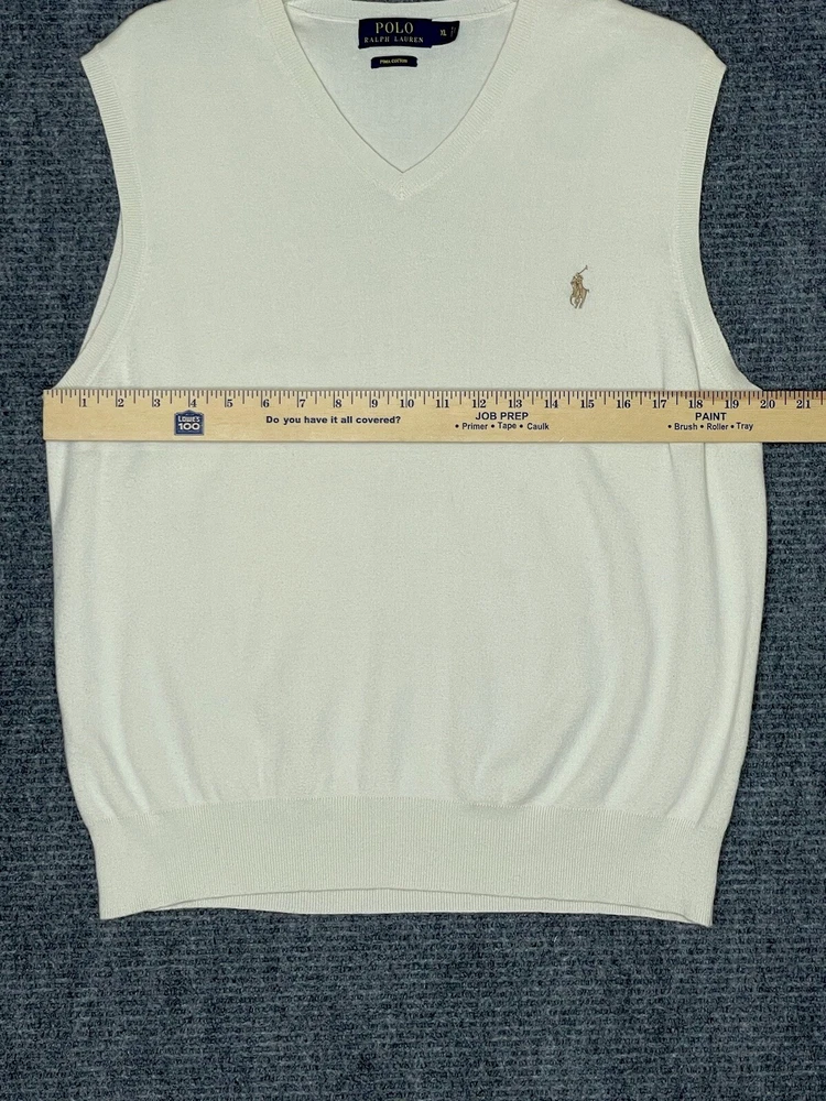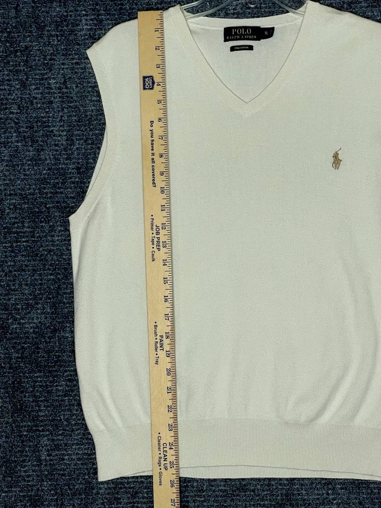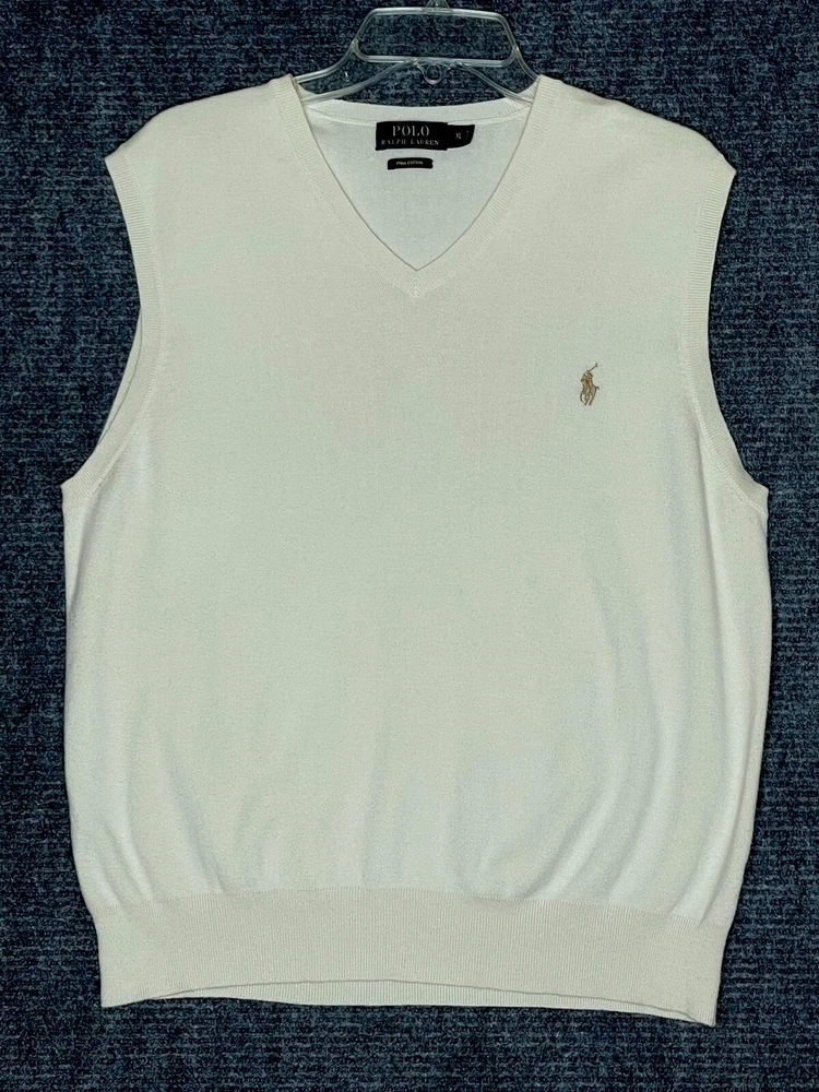 Ralph Lauren Polo Sweater Vest Mens XL White Pullover Pima Cotton Travel V Neck. Condition is Pre-owned. Shipped with USPS Ground Advantage.