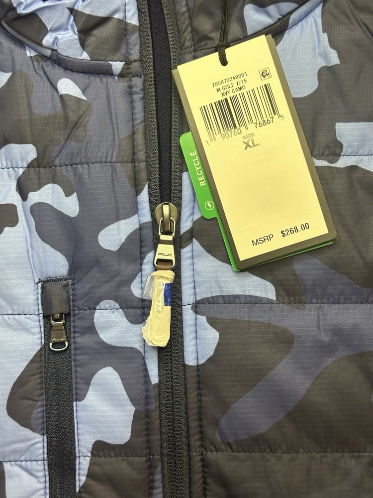 Color: Black Outer Shell Material: Polyester Size: XL Performance/Activity: Golf, Hiking, Running & Jogging, Walking Accents: Zipper Fit: Regular Pattern: Camouflage Closure: Zip, Refer Photo Occasion: Casual Department: Men Vintage: No Fabric Type: Wool Country of Origin: China Season: Fall, Spring, Summer, Winter Brand: RLX Ralph Lauren Product Line: Ralph Lauren RLX Collar Style: Stand-Up Theme: Colorful Warmth Weight: Warm Insulation Material: Wool Garment Care: Machine Washable Handmade: No Size Type: Regular Style: Puffer Jacket Jacket/Coat Length: Mid-Length Features: Full Zip Type: Jacket Lining Material: Wool Modal Elastane Personalize: No