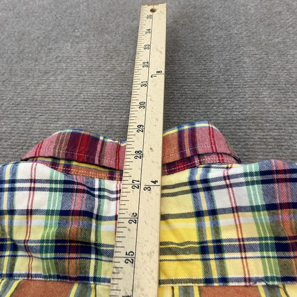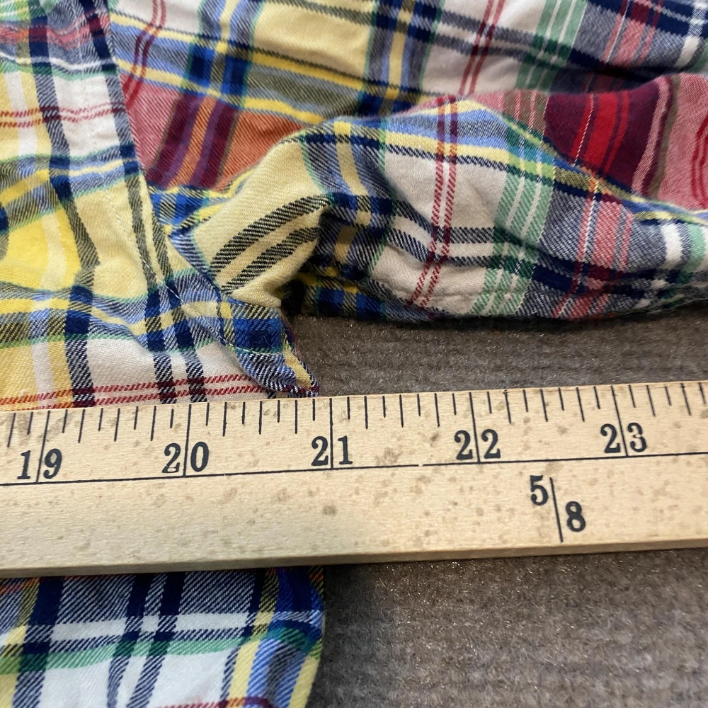 Light wear with minor signs of use from normal handling. No obvious stains, holes, or tears observed. Fabric shows some wrinkling from storage. All buttons intact and functioning; embroidery and collar present well. Item: Long sleeve button down shirt Pattern/Color: Multicolor madras plaid with classic RL styling Material: 100% Cotton Size on tag: Youth XL (18-20) Country of origin: Made in Indonesia Features: Button-down collar, front button closure, button cuffs, curved hem Features: Left chest pocket with embroidered Polo pony logo Notes: Measurements are shown in the photos for reference; please review for fit Special notes: Colors may vary slightly due to lighting and screen settings