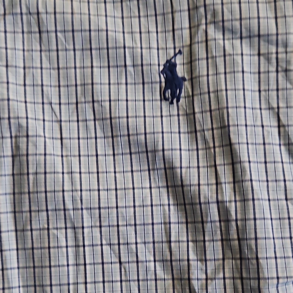 Ralph Lauren Yarmouth Blue White Check 100% Cotton Men's Dress Shirt 17 34/35