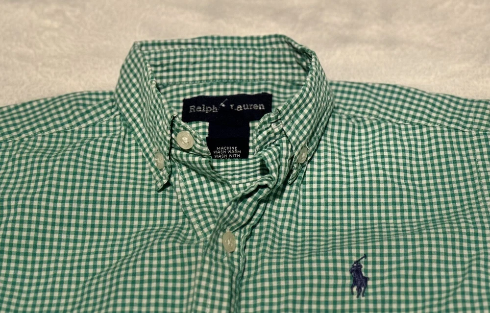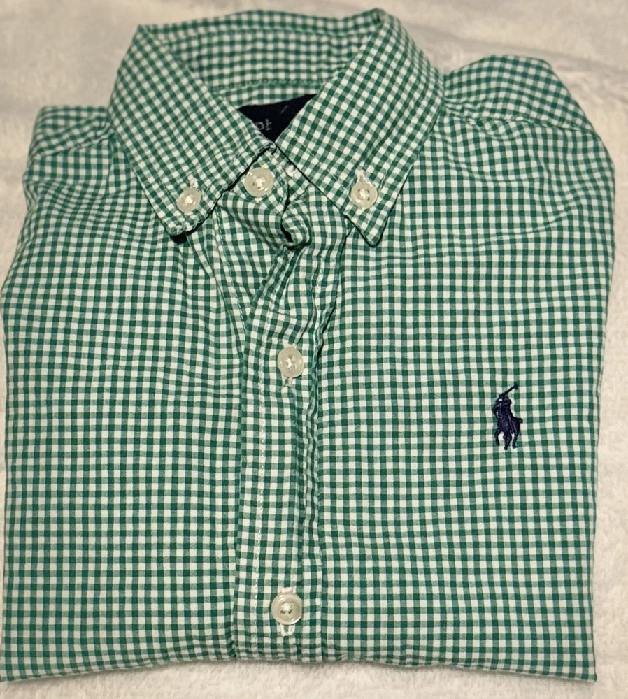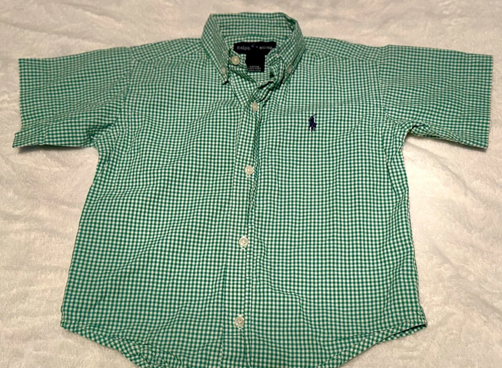 Ralph Lauren logo polo horse plaid button down shirt top, toddler boys size 2T 2, green & white plaid, logo buttons, excellent used condition. I am always happy to combine listings to save you on shipping & always ship the cheapest way possible to save you the most. Check out all the boy clothes & shoes I have listed.