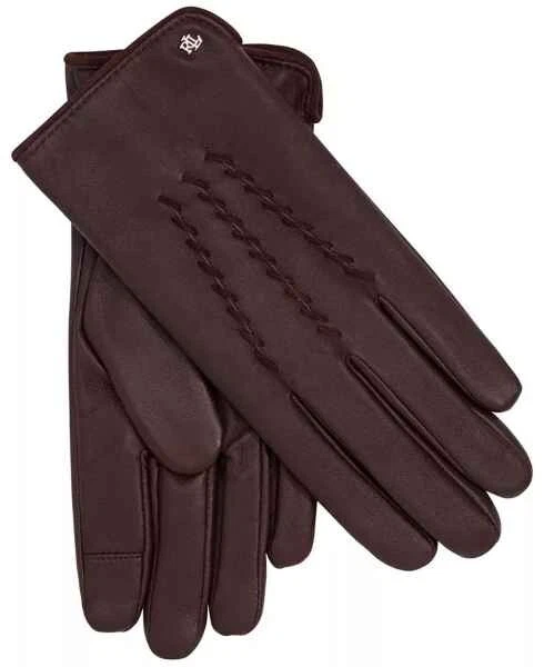 Ralph Lauren women's Leather Whipstitch Touch Gloves size: Large color: Country Brown Touch technology Thinsulate micro-fleece lined whipstitch detail on the top Logo detail at the top Touch technology Leather G194