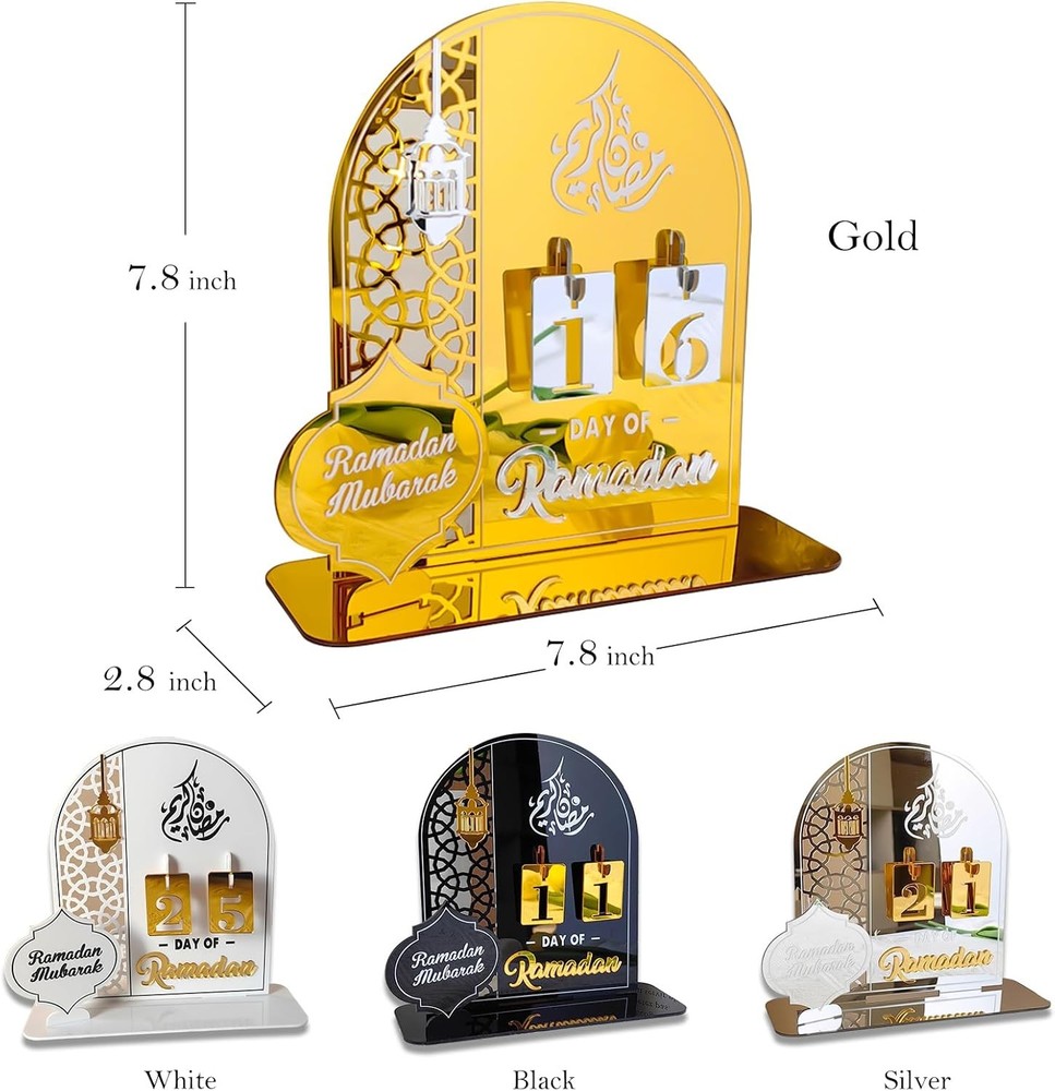 Free eBay listing template designed by dewiso.com Ramadan Advent Calendar 2026, Eid Mubarak Countdown Calendars Tracker Date Gift DIY for Arabic Muslim Islamic Holiday Table Home Decorations Count Down Calendar (Acrylic Silver) FREE AND FAST SHIPPING! About this item 1.Ramadan Advent Calendar: Multifunctional uses - Featuring a unique design with interchangeable numbers, it's not just a countdown tracker but also a stunning home decor piece.It amps up the joy during Ramadan,guiding you through the days till Eid Mubarak in style.A beautiful blend of tradition and creativity that'll surely draw eyes. 2.Premium Quality Materials: These Eid Mubarak Ramadan advent countdown calendars are crafted from acrylic ensuring durability and an eco-friendly appeal.Smooth surface and resistant to deformation. Durable and reusable. Enhance the joy of Ramadan with our Ramadan Advent Calendar Eid Mubarak Table Countdown.Assembled Dimensions: 7.8 x 7.8 x 2.8 inch / 20cm x20cm x7cm,freestanding. 3.Easy to Assemble: No need to fret over complicated setups! All assembly parts are pre-cut. Just give a gentle press before assembling, and you're good to go-no extra tools required. Unleash your creativity and get it ready in a jiffy for a festive touch on your tabletop. Reusable for years. 4.Multifunctional for Festivals: Tailored for Islamic Muslim Eid Mubarak Ramadan and other festivals, it's a must-have to mark those special days.Whether it's counting down to Eid or sprucing up your home during celebrations, this calendar does it all, infusing the holiday spirit. 5.Ideal Gift Choice: Searching for a unique present? Look no further! The Ramadan calendar ornament makes an ideal gift for, families, friends, or colleagues.Add a special charm to any home and share the joy of Ramadan Eid with your loved ones.Tips: Please tear off the protective film on the product surface before use. Product We offer a 30-Day Return Policy on items which you are not completely satisfied with. You have the option for a full-refund or an exchange of the item. No returns are available on items shipped outside of the US . Shipping We offer Free Shipping to the US and ship within 2 business days of payment, usually sooner. We use UPS express shipping. That's why your products are usually delivered within 3 days . Contact We try our very best to make sure every customer is completely satisfied. If there's a problem , message us! We're happy to help. 24/7 live chat available.