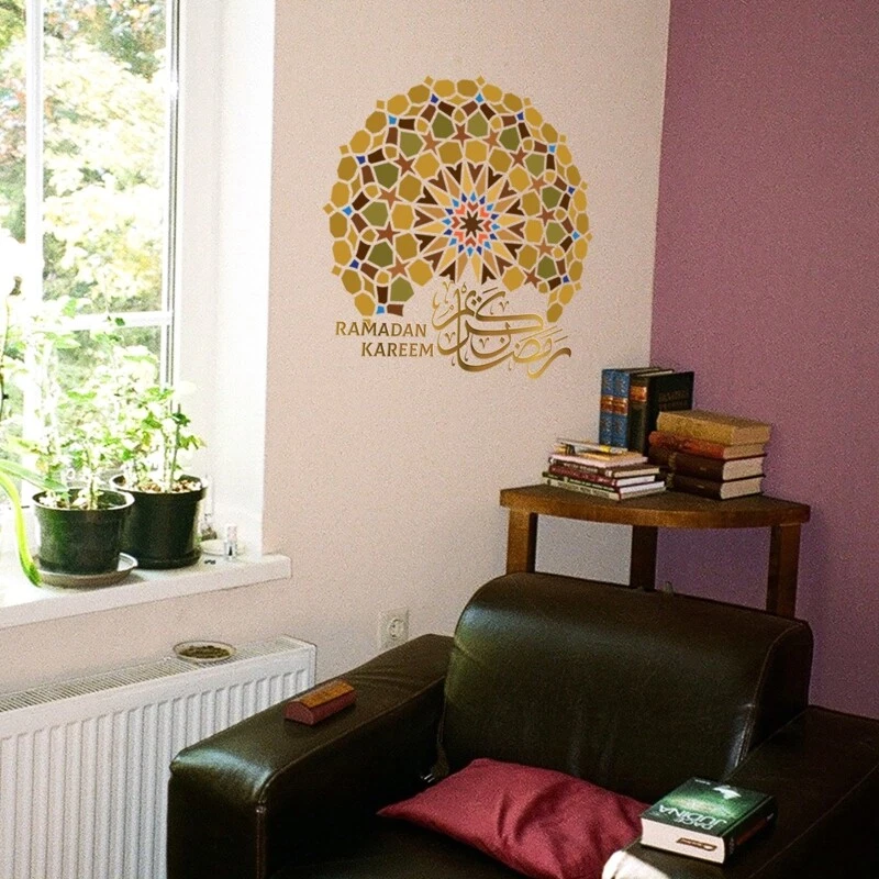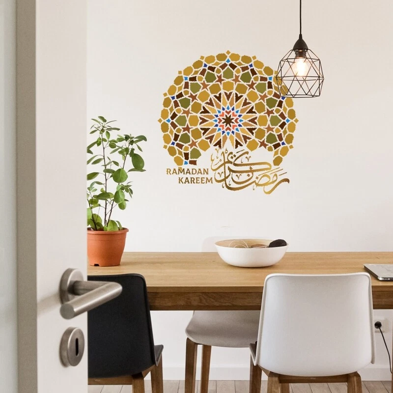 Ramadan Kareem Sticker for Creative Star Wall Art Decor 3D Decal Ornament Features: Eid Star,Ramadan Kareem words is very beautiful. Premium They are PVC material.Non environmental for Easy to DIY facilitate easier, richer color pattern. Just peel and and give your house wall a change. Suitable for:These Eid wall stickers can be directly attached to the ceramics, glass window furniture car and any flat even smooth surfaces. Decoration: DIY for your lovely and elegant Room,it will be beautiful, and love house. Specification: PVC Size: approx.30x30cm/11.81x11.81in Color: As the picture shown Quantity: 1Pc Note: Please allow 0-1cm error due to manual measurement. pls make sure you do not mind before you bid. Due to the difference between different monitors, the picture may not reflect the actual color of the item. Thank you! Package Contents: 1xEid Wall Sticker (other accessories in the picture is not included.)