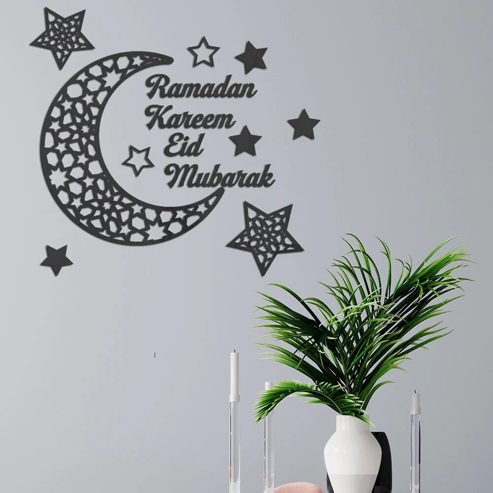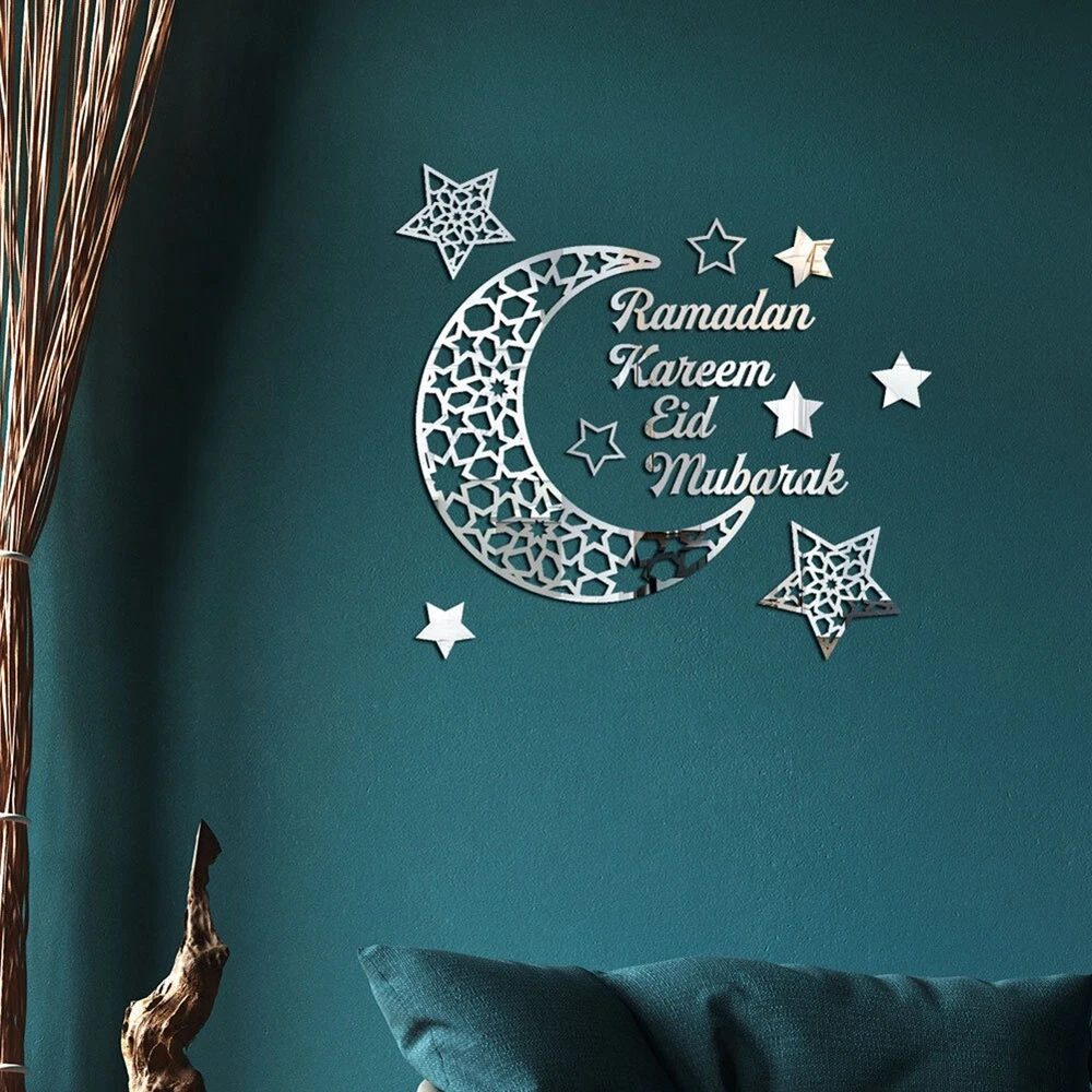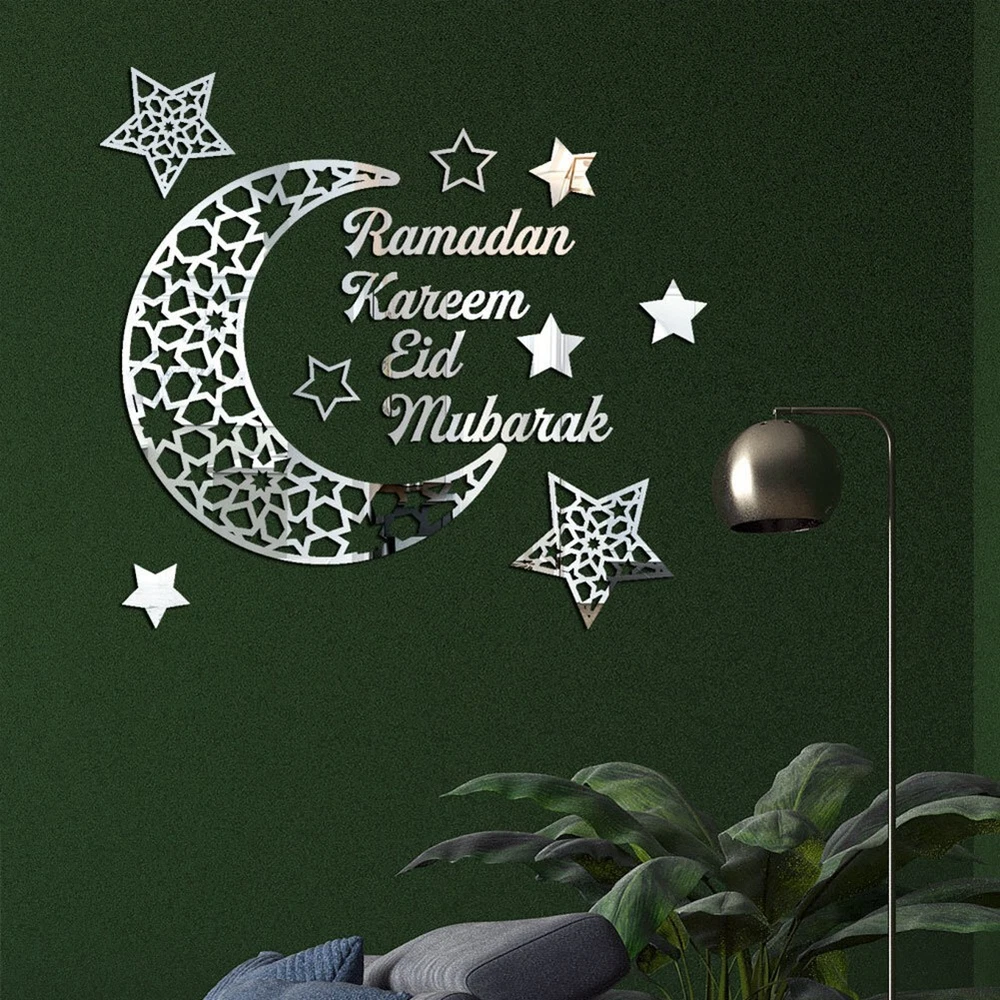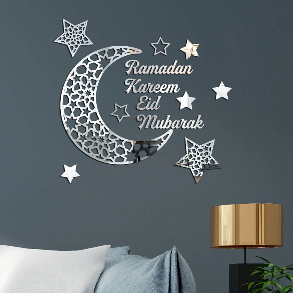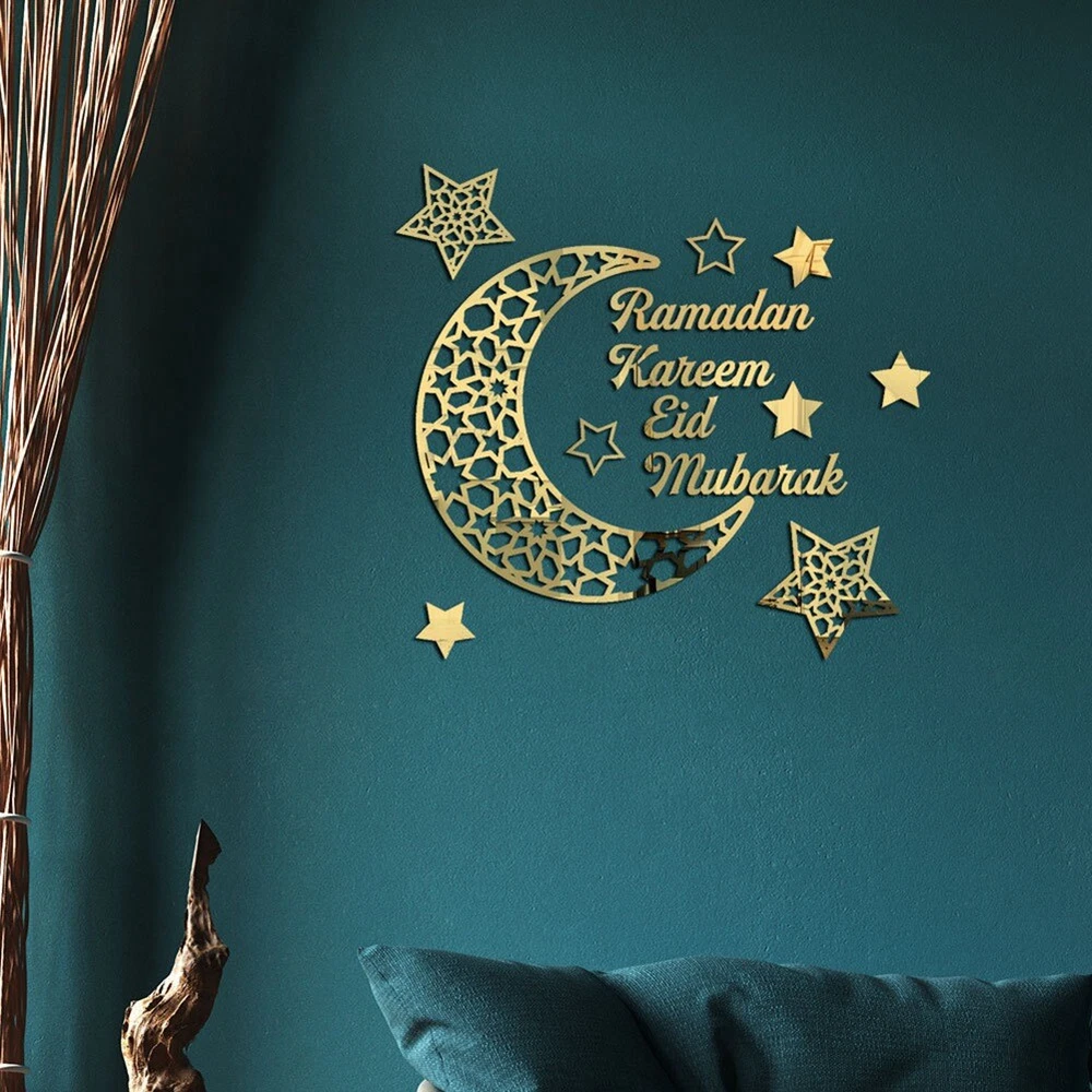 Ramadan Stickers Decorations Wall Eid Mubarak for Home Decor Sign4889 The material is acrylic, the thickness is 1mm, the product cannot be bent, there is glue on the back, tear off the back glue to paste.Cleaning the wall before applying the stickers just to get a stronger hold The products need to be matched and placed by themselves, and then attached to the wall or window The of the product is a crystal mirror . It has a good reflective effect, and it will look better under the illumination of the light Specially decorated for Eid Mubarak Ramadan, Muslim , Birthday, Islamic , Eid al Fitr etc colour: gold Material: acrylic Size: 42x45cm Package Contents: 1 x pendant