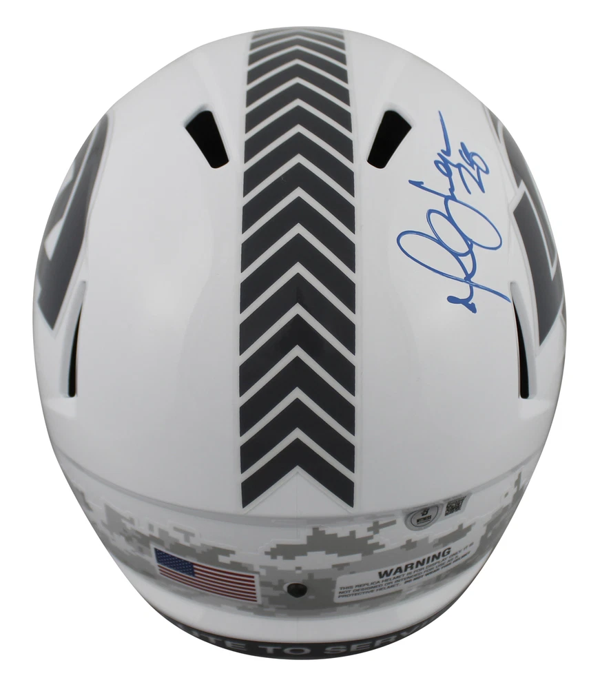 Press Pass Collectibles Football Trading Cards Photographs Framed Photographs Footballs Jerseys Framed Jerseys Game Used Helmets Mini Helmets Index Cards Lithographs Magazines Other Baseball Trading Cards Photographs Framed Photographs Baseballs Bats Jerseys Game Used Helmets Index Cards Lithographs Magazines Other Basketball Trading Cards Photographs Framed Photographs Jerseys Framed Jerseys Basketballs Game Used Floors Index Cards Magazines Other Hockey Trading Cards Photographs Jerseys Framed Jerseys Game Used Hockey Sticks Pucks Index Cards Magazines Other Boxing Photographs Framed Photographs Gloves Trunks Other Golf Photographs Balls Flags Index Cards Other Misc Sports MMA Olympic Racing Soccer Tennis Wrestling Other Celebrity Photographs Framed Photographs Books Magazines Posters Other Music Photographs Framed Photographs Performance Used Albums CDs Drum Heads Drum Sticks Guitar Posters Programs Other Historical Photographs Documents Military Space Other Presidential Photographs Baseballs Books Documents Magazines Other All Inventory 259.99 This Autographed Alternate 2024 Salute To Service III Riddell Full Size Speed Rep Helmet has been Personally Signed by Marshall Faulk of the St. Louis Rams. This item is 100% Authentic to include a hologram by Beckett Authentication Services. This item may come with the new Beckett Authentication hologram that has a scannable QR code rather than the traditional COA. If you would like to have a COA, you are welcome to reach out to Beckett for a printed certification once you receive your item. This is a BAS Witnessed Protection Program item which means a Beckett Authentication Service representative was present when this item was being signed. We conducted an autograph signing with Marshall Faulk where multiples of the same item were signed. While the photographs are representative of this item, the size, placement and strength of the signature may vary. Each item is hand signed, therefore, each autograph is unique. This item can be verified through BAS Witnessed. Product Details Signed By: Marshall Faulk Additional Info: St. Louis Rams Authenticated By: Beckett Details: The PPC Guarantee: Press Pass Collectibles (PPC) offers authentic in-person autographs that include a 100% money-back lifetime guarantee regarding the autograph's authenticity. Our items are sourced from PPC autograph signings or direct from leading suppliers of authentic memorabilia. The companies that authenticate these items include Beckett Authentication Services (BAS), Professional Sports Authenticator (PSA/DNA), James Spence Authentication (JSA), Steiner Sports, Upper Deck, Fanatics, Mounted Memories, and Tri-Star Productions. All autographed items come with a Certificate of Authenticity (COA) from these suppliers that includes a tamper proof hologram affixed to the item. Shipping: Press Pass Collectibles ships all orders via UPS, FedEx, or USPS within 24 business hours. We will combine shipping ! Additional items are typically $1 - $2 each, but cost may vary depending on dimensions and weight. Please contact us for a combined invoice prior to making your paymen t. PPC Exclusives: Press Pass Collectibles has exclusive autograph relationships with over 50 professional athletes and celebrities including Magic Johnson, Chevy Chase, Travis Kelce, DK Metcalf, Justin Jefferson, Randy Moss, Kyler Murray, Adrian Peterson, Baker Mayfield, Ray Lewis, George Kittle, Dak Prescott, Jerome Bettis, Chase Claypool, Deion Sanders, Jack Lambert, Mean Joe Greene, T.J. Watt, J.J. Watt, Tony Dorsett, Devin White, Tony Gonzalez, Emmitt Smith, Michael Irvin, Jason Witten, Jared Allen, Kurt Warner and more! Shop our entire collection