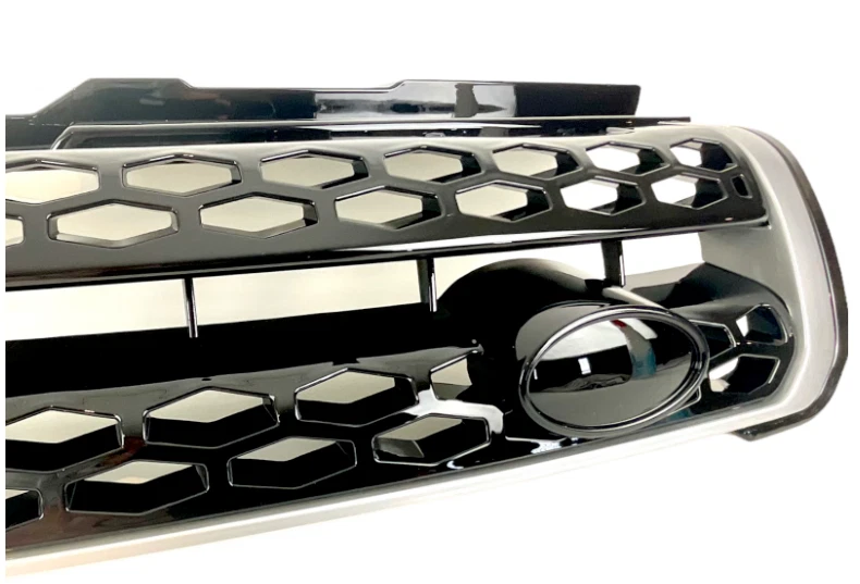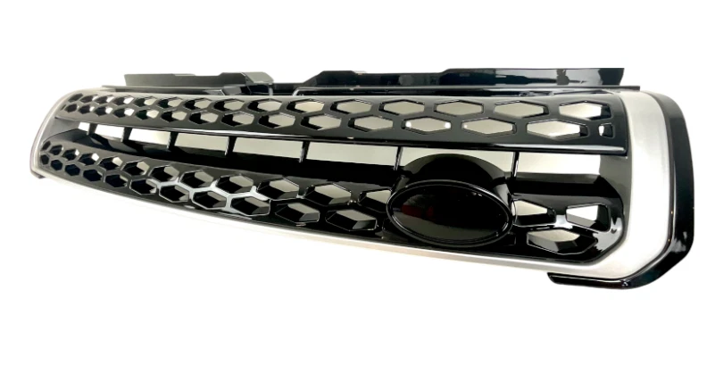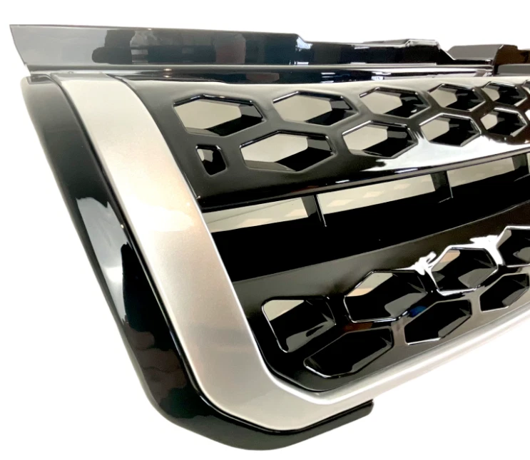Brand New Pure / Prestige Front Grille Finished in Gloss Black With Silver trim Fits: All Evoques made between these years: 2011-18 This high quality easy fit stylish upgrade, made from tough ABS plastic includes: 1 x Pure Style Front Grille This Grille gives your Range Rover an upgraded Look! Simple to change requiring no tools, just release 3 spring clips and gently pull. These grilles are made from tough durable ABS plastic. These grilles DO NOT come with badges, they have to be purchased separately or use the existing badge from your old grille. This is NOT a genuine Land Rover Product, however it is made of high quality toughened ABS plastic, the same as the original. Other colour combinations are available, please see our other listings on ebay. Trade enquiries welcome. Disclaimer: Autostyle Performance Ltd do not claim that the products we supply are of Original Equipment Manufacturer (OEM) origin other than when specifically stated. Our parts are compatible pattern parts for spares. Any reference to vehicle manufacturers and models is for identification of suitability only.