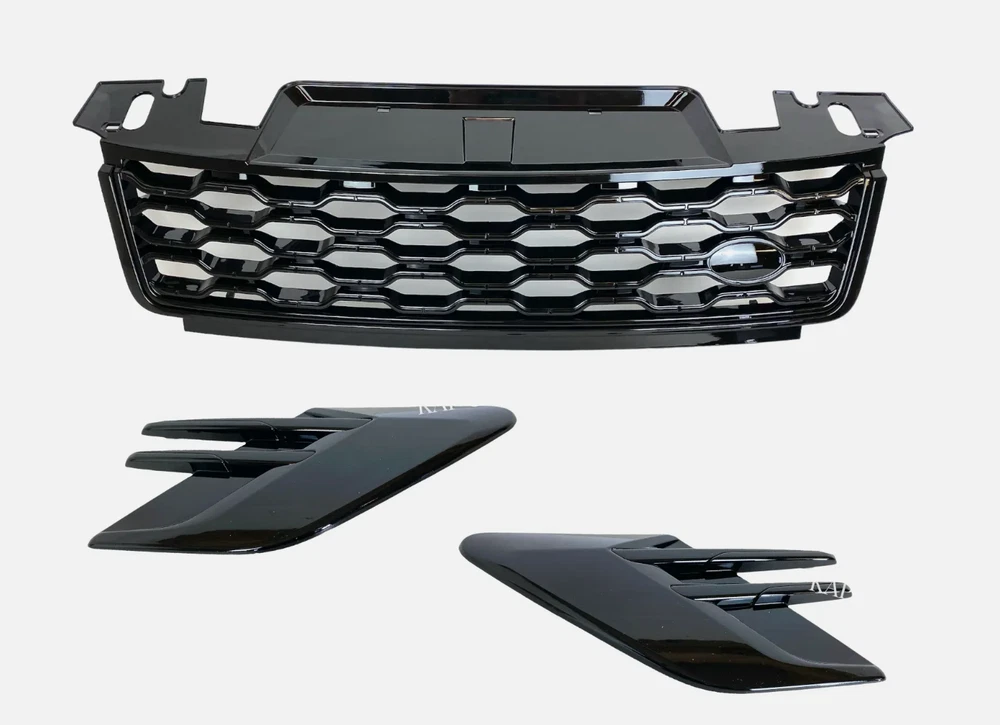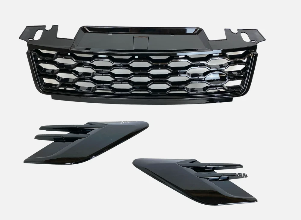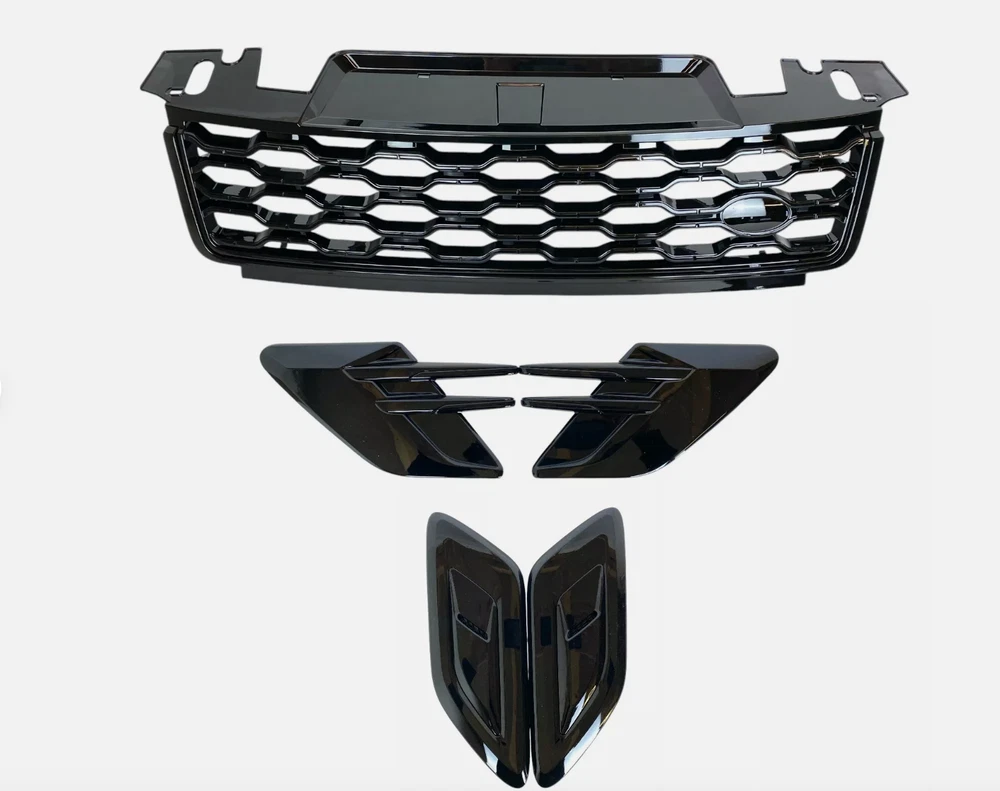 New 2018+ Gloss Black Dynamic Style Front Grille, Side Vents & Bonnet Vents Fits: Range Rover Sport L494 2018-2022 Models Includes: 1 x Dynamic Style Front Grille Finished in Gloss Black 1 x Pair Dynamic Style Side Vents Finished in Gloss Black 1 x Pair Dynamic Style Bonnet vents Finished in Gloss Black Please note: this will NOT fit the L494 2013-17 Models Give your Sport a fresh new look with these Gloss Black Dynamic Style Side Vents The vents are made from tough durable ABS plastic. This is NOT a genuine Land Rover Product, however it is made of high quality toughened ABS plastic, the same as the original. This is NOT a genuine Land Rover Product, although it is an excellent quality aftermarket product. We are a UK based vehicle styling company with stock in our warehouse in Suffolk. Disclaimer: KAP UK do not claim that the products we supply are of Original Equipment Manufacturer (OEM) origin other than when specifically stated. Our parts are compatible pattern parts for spares. Any reference to vehicle manufacturers and models is for identification of suitability only.