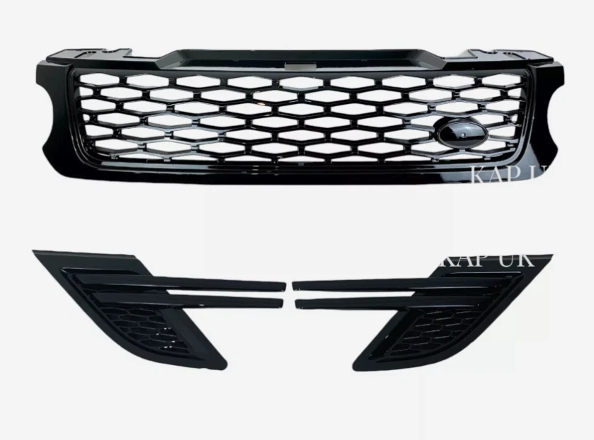 Brand New SVR Upgrade front Grille & Side Vents Fits: Range Rover Sport L494 2013-18 Kit Includes: 1 x SVR Style Front Grille 1 x Pair Gloss Black Dynamic Side Vents This high quality easy fit stylish upgrade kit is made from tough ABS plastic. Please note: this is only for 2013-18 L494 models This upgrade pack gives your Range Rover a stylish look.. These grilles DO NOT come with badges, they have to be purchased separately or use the existing badge from your old grille. This is NOT a genuine Land Rover Product, however it is made of high quality toughened ABS plastic. Other colour combinations are available, please see our other listings on ebay. Trade enquiries welcome. We are a UK based vehicle styling company with stock in our warehouse in Suffolk. Disclaimer: KAP UK do not claim that the products we supply are of Original Equipment Manufacturer (OEM) origin other than when specifically stated. Our parts are compatible pattern parts for spares. Any reference to vehicle manufacturers and models is for identification of suitability only.
