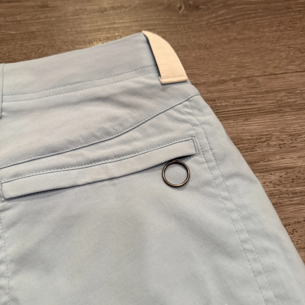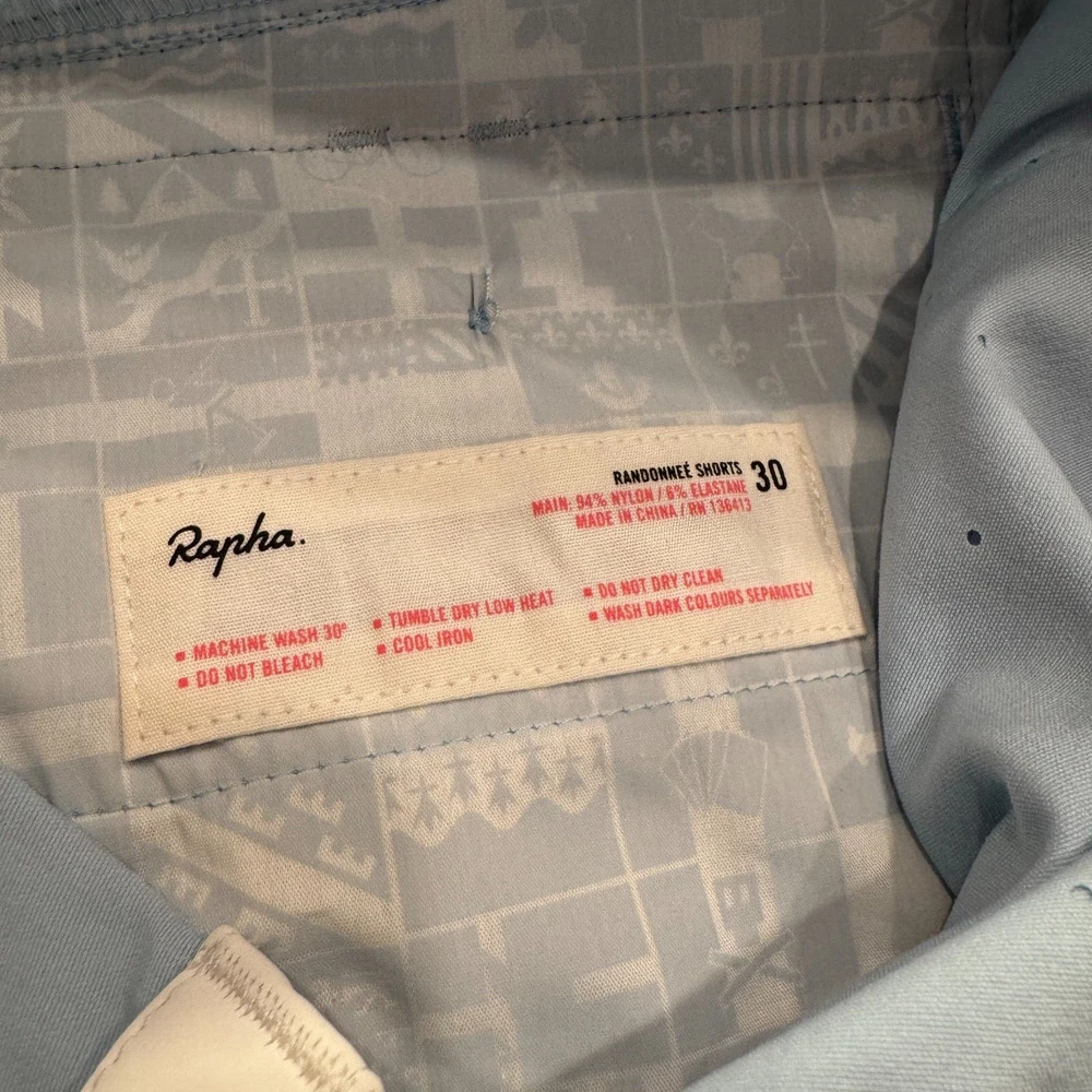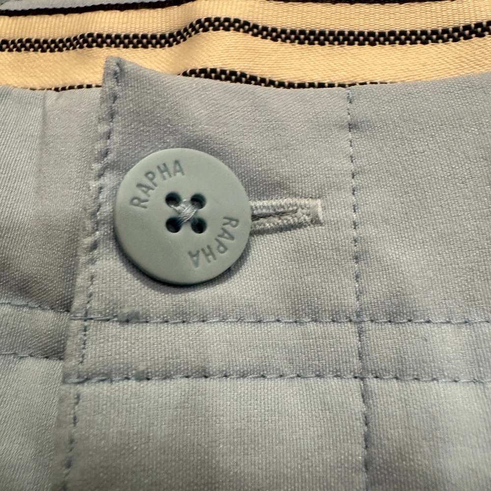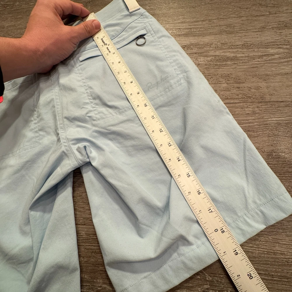 Size: 30 Department: Men Closure: Button Fit: Regular Inseam: 9 in Features: Breathable, Lightweight, Pockets Pocket Type: Slash Pocket Occasion: Casual, Travel, Workwear Accents: Button, Logo, Zipper Size Type: Regular Brand: Rapha Pattern: Solid Color: Blue Style: Bermuda Material: Nylon Fabric Type: Knit Waist Size: 30 in Fabric Wash: Medium