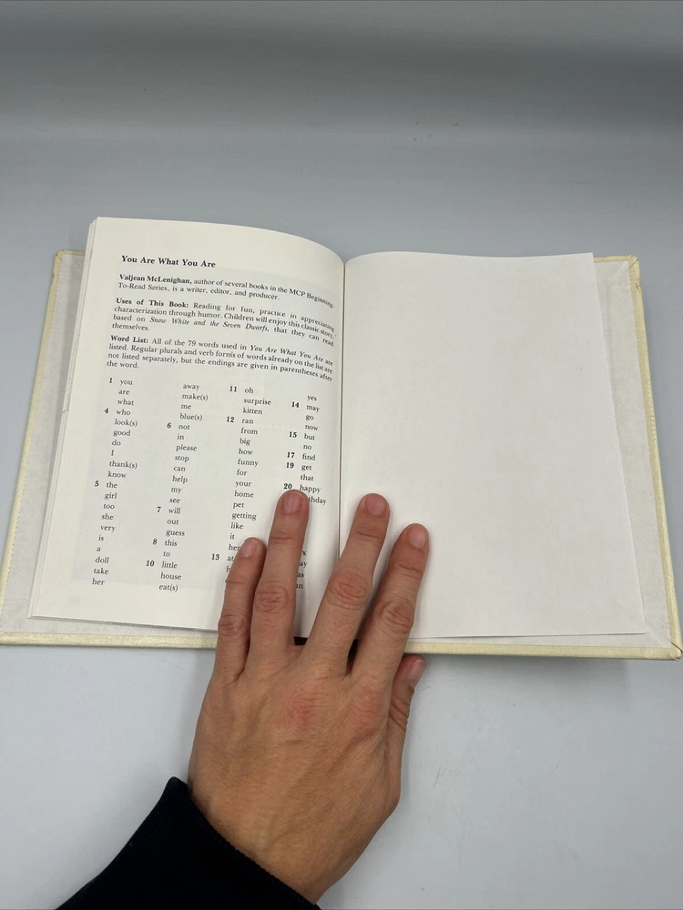 This rare 1977 edition of "You Are What You Are" by Valjean McLenighan is a must-have for any book collector or fan of the Beginning-to-Read series. This hardcover book, written in English, is the perfect addition to your collection. The narrative type of this book is fiction and it falls under the category of Books & Magazines. The book title is based on the famous Disney character, Snow White, and is sure to captivate readers of all ages. This edition of the book is from 1977 and is part of a larger series of Beginning-to-Read books. Don't miss your chance to own this rare gem!
