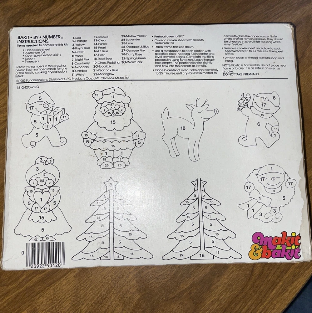 Add a touch of vintage charm to your holiday decor with this rare 1983 Makit & Bakit Santa Land Stained Glass Christmas Ornament Kit. This kit includes everything you need to create a beautiful ornament that will surely become a family heirloom. Crafted in the United States, this kit is perfect for those who love unique and handmade holiday decorations. New in box, never opened. Pictures show signs of water stain on box.