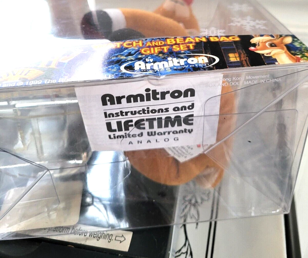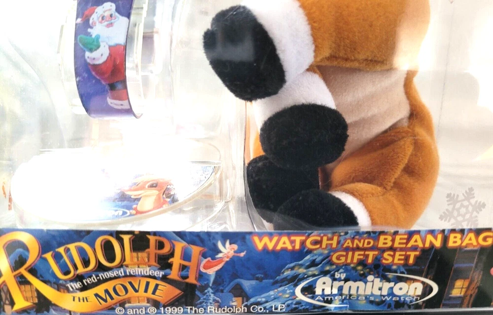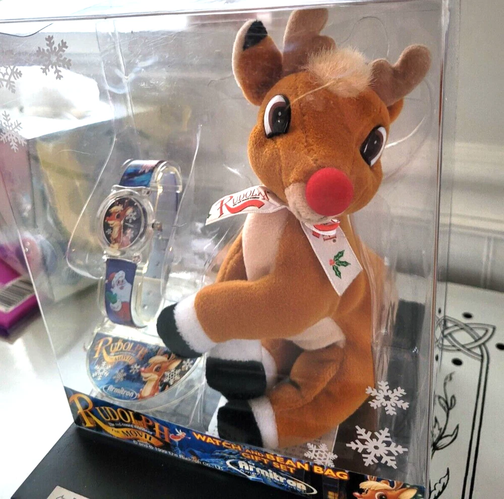 A fantastic find: vintage and rare gift set from the Ruldolph movie, 1999! Features an Armitron wristwatch and 6" Bean baby Plush...difficult to find. Photos show exact item you will receive in detail. Original packaging shows label residue. Please see my other offerings for crafters and collectors. Always smoke-free.. Shipping is always combined when possible.
