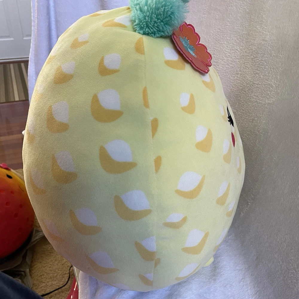 Absolutely love this adorable pineapple Squishmallow! It’s super soft, huggable, and in perfect condition—no flaws at all. The vibrant colors and cute flower details make it a standout piece in my collection. Very rare find, and the quality is fantastic. So happy to own this summer-themed plush—definitely a must-have for Squishmallow fans!