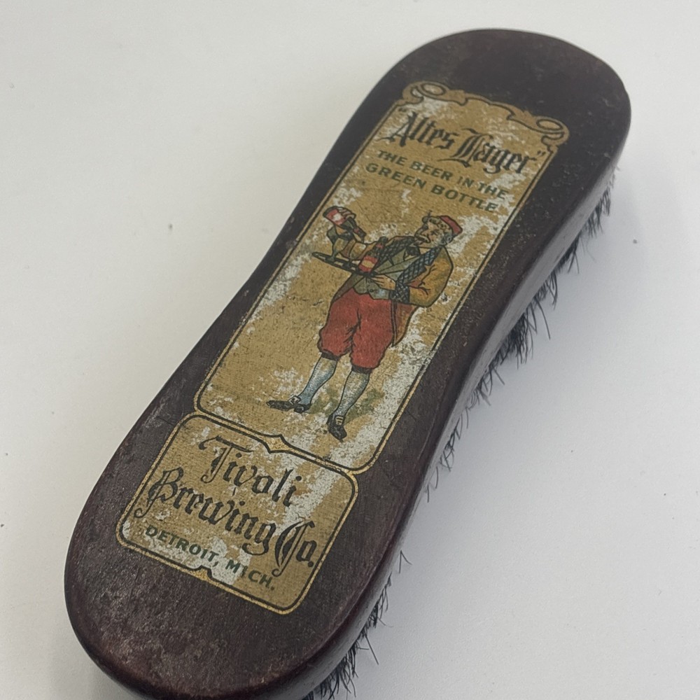 This product is a rare antique Altes Lager Tivoli Brewing green bottle beer brush from Detroit, MI. The item is a unique collectible piece that falls under the theme of Breweriana, specifically related to beer and brewing. The antique bottle brush adds a touch of nostalgia for collectors and enthusiasts of vintage breweriana items.