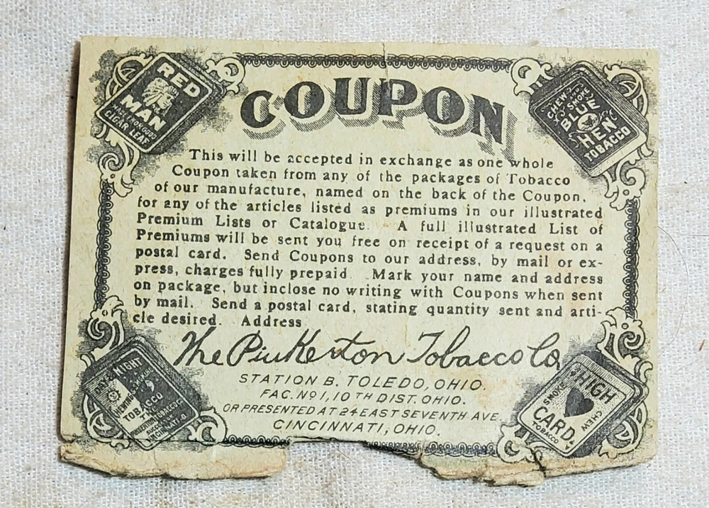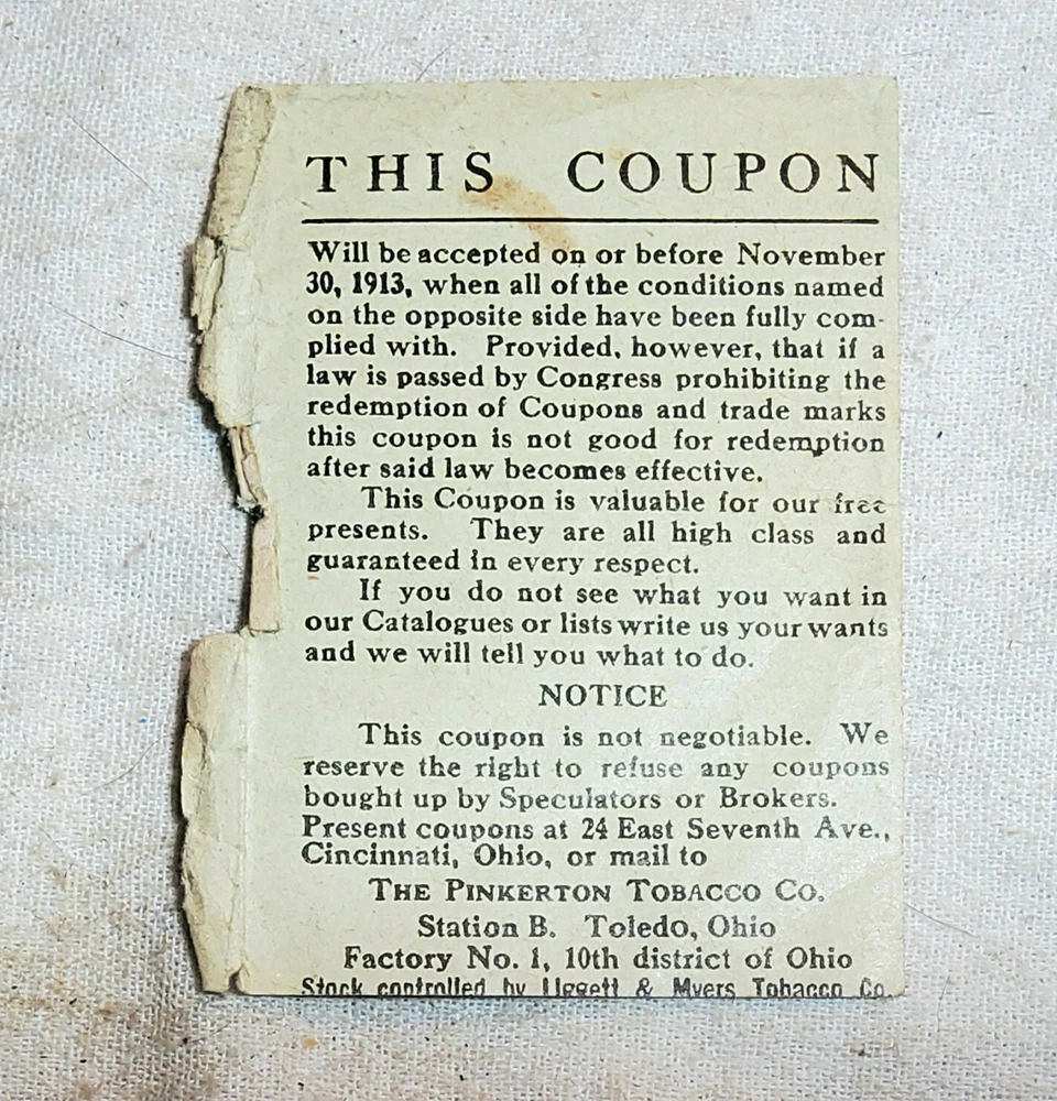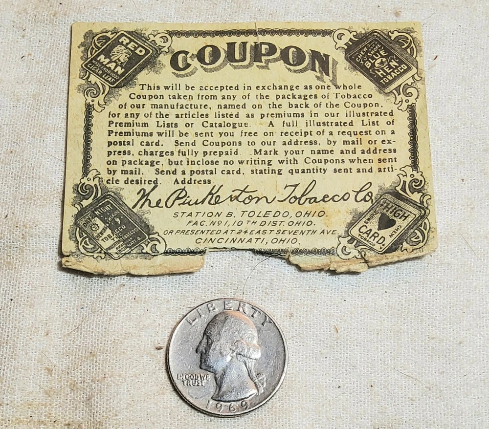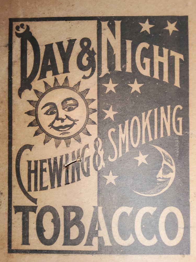 RARE ANTIQUE DAY & NIGHT CHEWING & SMOKING TOBACCO HEAVY PAPER SIGN AND COUPON This is a vintage advertising sign for Day & Night Tobacco and small coupon that probably dates to the early 1900s. First item is a one-sided heavy paper sign that reads, "Day & Night Chewing & Smoking Tobacco" with moon and sun graphics also. It measures 14" tall by 11 and 3/4" wide. It is in good condition with just one small place where a hole goes through the word "Chewing". It would look absolutely fantastic if you were to frame it. The second item is a small coupon for The Pinkerton Tobacco Co. with Red Man, Blue Hen, High Card and Day & Night Tobacco advertising around the corners. Coupon has an expiration date on the back of 1913. It has some wear around the edges but is a nice advertising piece. Measures 3" by 2 and 1/4". Please see pictures for design and condition detail in both items. Wonderful and rare Day & Night Tobacco advertising pieces would be a great find for you. Don't miss them.