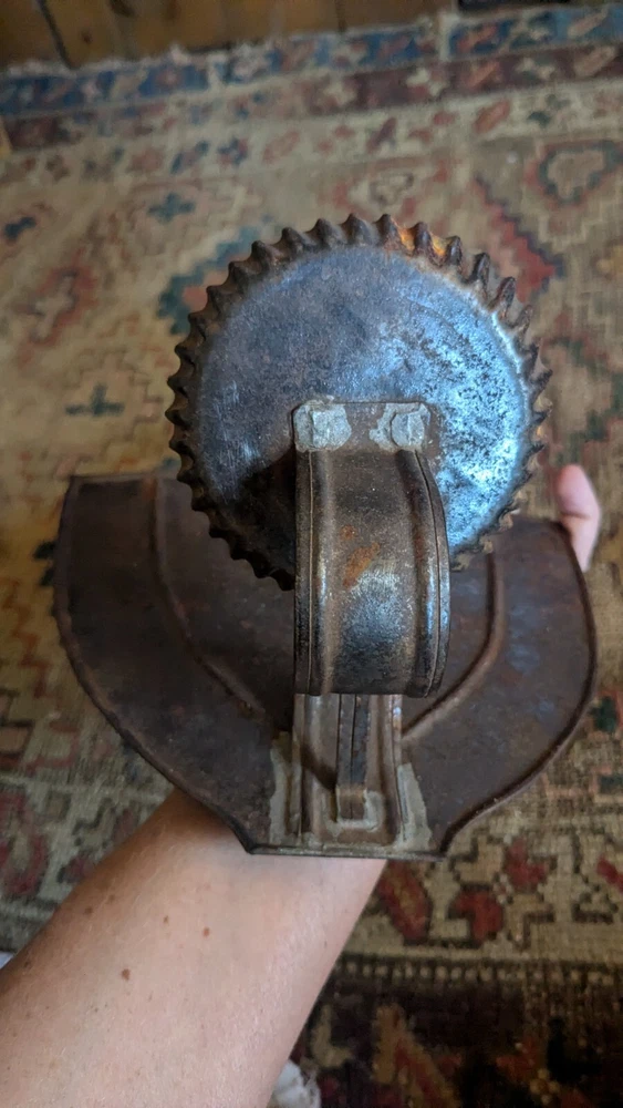 Offering this antique metal tin punched sconce Candleholder. Measures 14.5 x 8 x 5.75". This sconce has a dark patina and rustic surface. Has a shield style form and punch. Almost like a Hallmark look. Has a cleated bottom. Holder has a great form, leans some as seen. Expect minor sauter loss and a hard to find punch pattern and sweet piece. Thanks for looking.