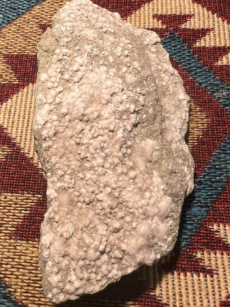Artinite, Staten Island, NY. Here is an 10.2cm by 5cm plate of acicular Artinite crystals on Serpentine from the Spring Street at Medford Road Occurance. Most of the collecting here occurred during the late 1960s and early 1970s with no access since. The serpentine is the oldest rock on the surface of Staten Island. Very unusual to find today!