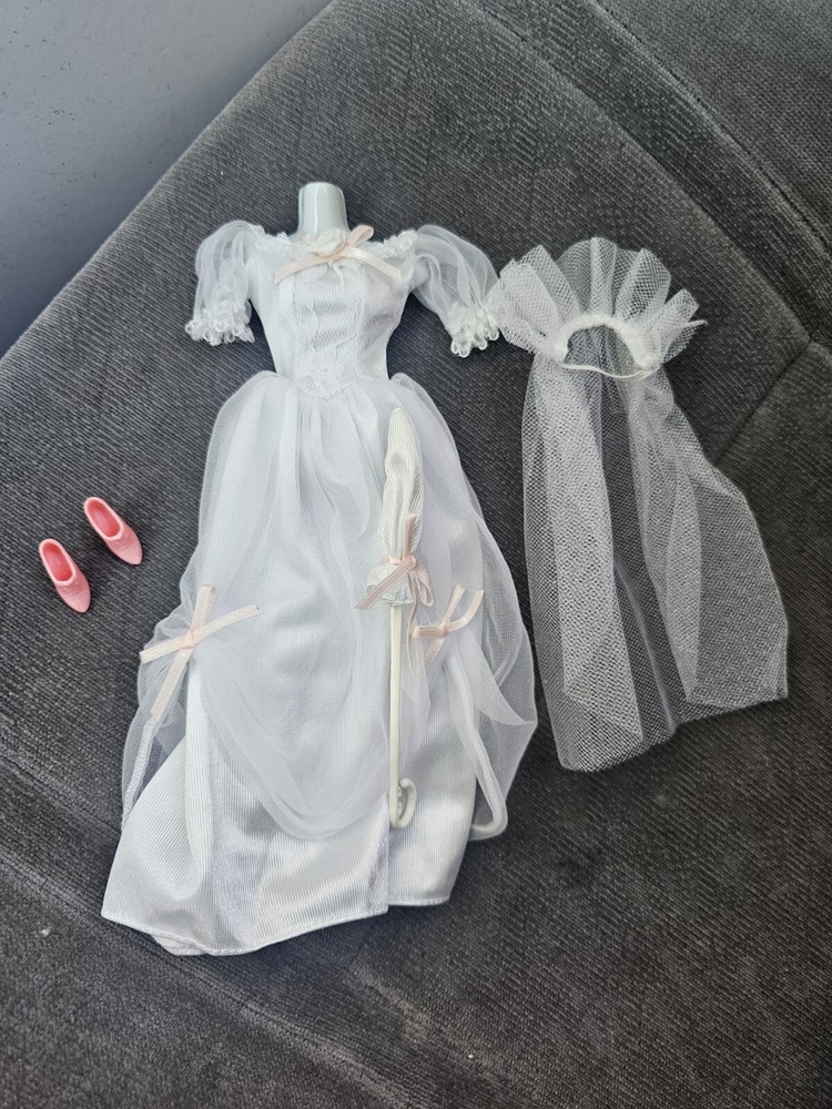 Barbie Fashion Avenue Bridal Victorian White Wedding Dress Outfit Umbrella Rare . New with out tags