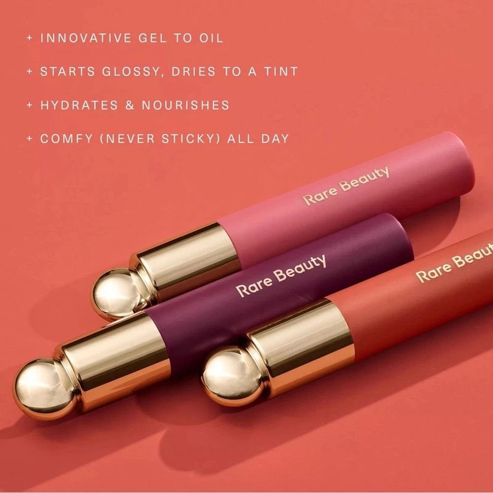 NEW An innovative gel-to-oil formula that starts glossy and leaves lips tinted while staying comfortable—never sticky—all day.