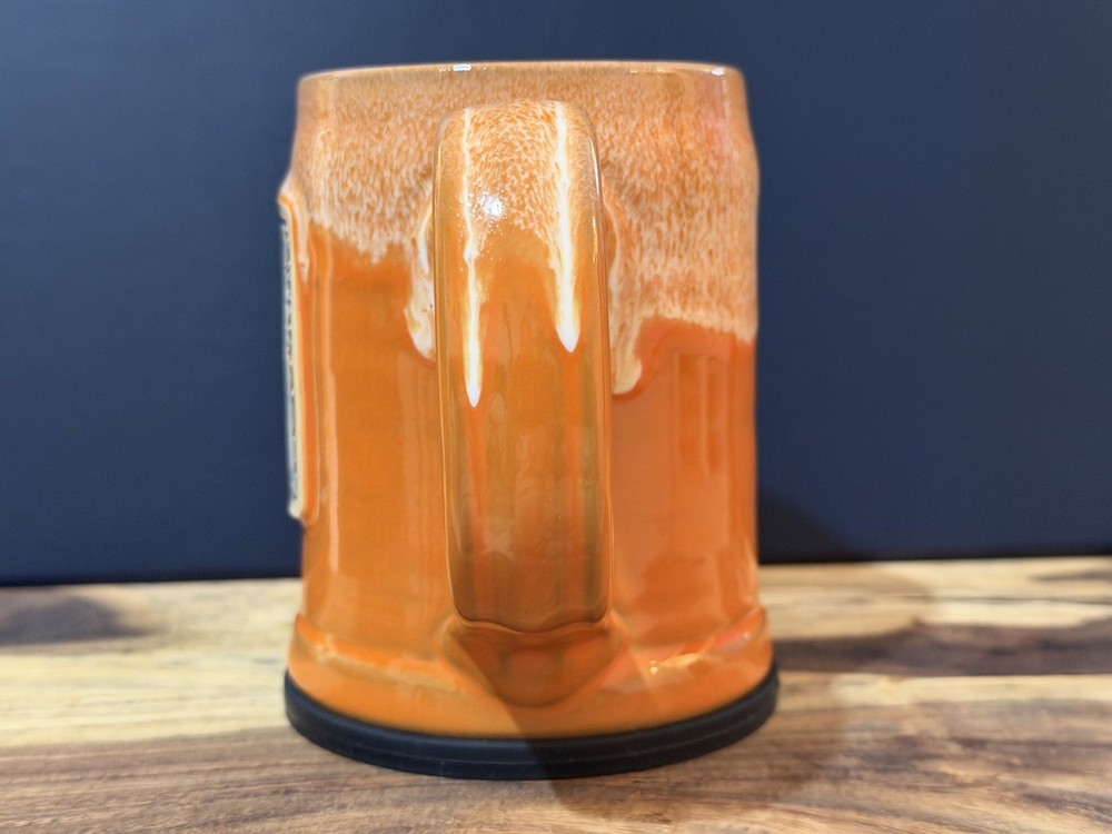 The Bones Coffee Co 2018 “Wunderbones German Tankard” (Limited Edition) mug is a *RARE* medium-sized handthrown ceramic mug with an embossed orange design, perfect for enjoying hot or cold beverages. Handmade by Deneen Pottery, this round mug is ideal for collectors and those looking for a unique addition to their kitchen or home decor. With its Wunderbones pattern and Octoberfest theme, this limited edition mug is a special piece for any coffee or tea enthusiast. Item Specifics: -The item is a **BRAND NEW-UNUSED-DISPLAY PIECE ONLY** with NO visible signs of ware, scuffs or scratches. -Suitable for both hot/cold beverages and is microwave/dishwasher safe. -Proudly made in the U.S.A. in Saint Paul, Minnesota Since “1972” -The mug *PICTURED* is the *EXACT MUG YOU WILL RECEIVE*