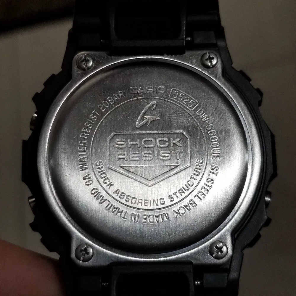 With Original Box/Packaging: No Country/Region of Manufacture: Thailand Band Width: 20 mm Department: Men Case Material: Resin Movement: Quartz Year Manufactured: 2010-2019 Reference Number: DW-5600E, DW5600E Water Resistance: 200 m (20 ATM) Model: Casio G Shock Watch Shape: Square Handmade: No Band/Strap: Two-Piece Strap Bezel Type: Fixed, Smooth Dial Color: Black Features: Alarm, Backlight, Chronograph, Date Indicator, Mineral Crystal, Multifunction, Shock-Resistant, Splash Proof, Timer, Water-Resistant Band Material: Resin Case Finish: Matte Bezel Color: Black With Manual/Booklet: No Closure: Buckle Band Color: Black Case Size: 43 mm Type: Wristwatch Style: Casual, Classic, Sport Caseback: Screwback Indices: Arabic Numerals Display: Digital Brand: Casio With Service Records: No Customized: Yes Vintage: No With Papers: No Seller Warranty: No Case Color: Black