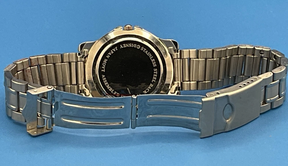 Rare Disney Channel Men’s watch. Silvertone band. Face is approx 1 1’2” diameter. Has protective plastic on back. Stainless steel back. Untested. Refer to pictures as part of description. **We will consider any reasonable offer. Check out our other listings as we add new items every day. Thanks for looking and give us a follow!**
