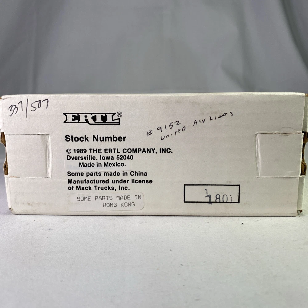 Model:MackBrand:ERTLVehicle Type:Delivery TruckSeller Notes:“Good condition as seen in photos with box.”UPC:N/AVehicle Year:1926Color:WhiteMaterial:Die-castgtin13:N/ACountry/Region of Manufacture:MexicoGender:Boys & GirlsScale:1:38Year of Manufacture:1989Features:Key, Box, Limited EditionVehicle Make:MackRecommended Age Range:8+