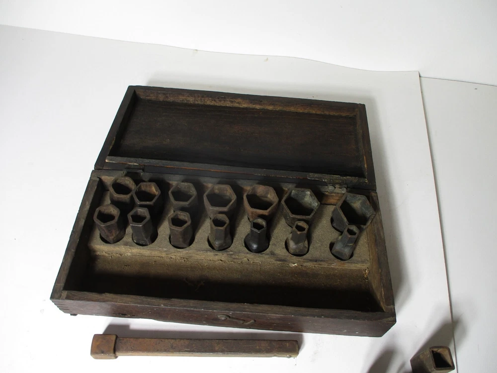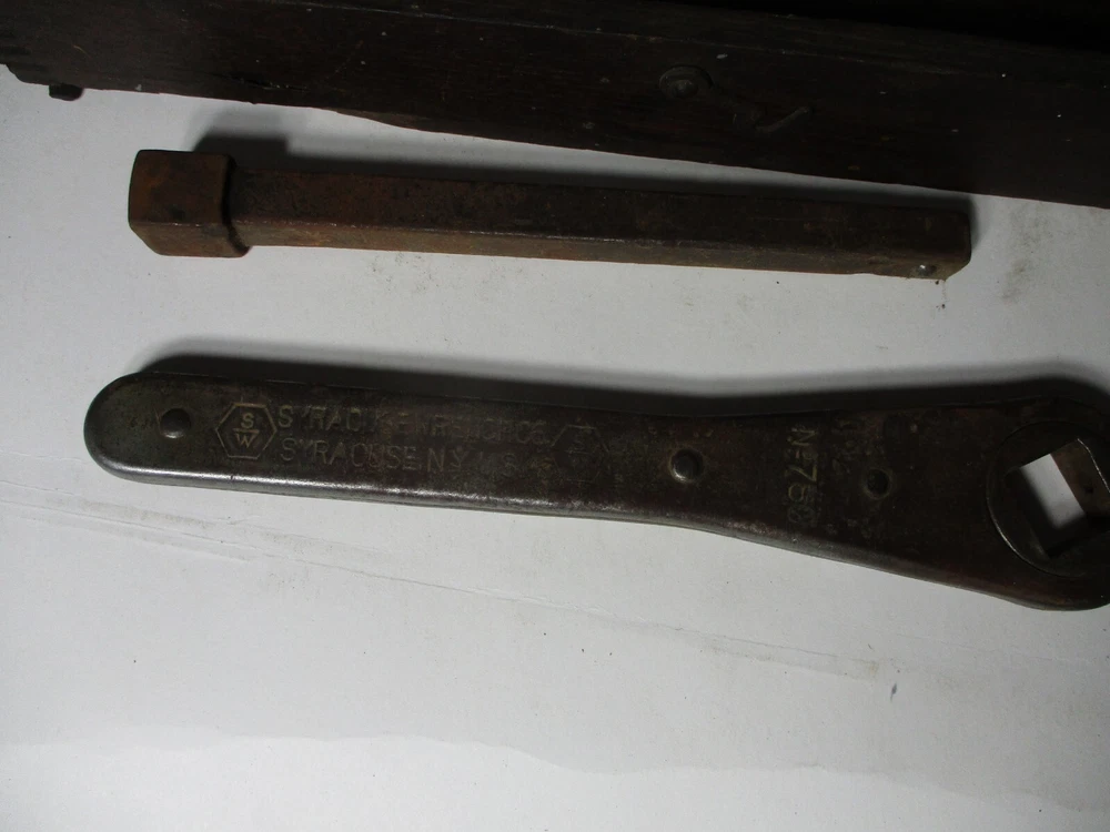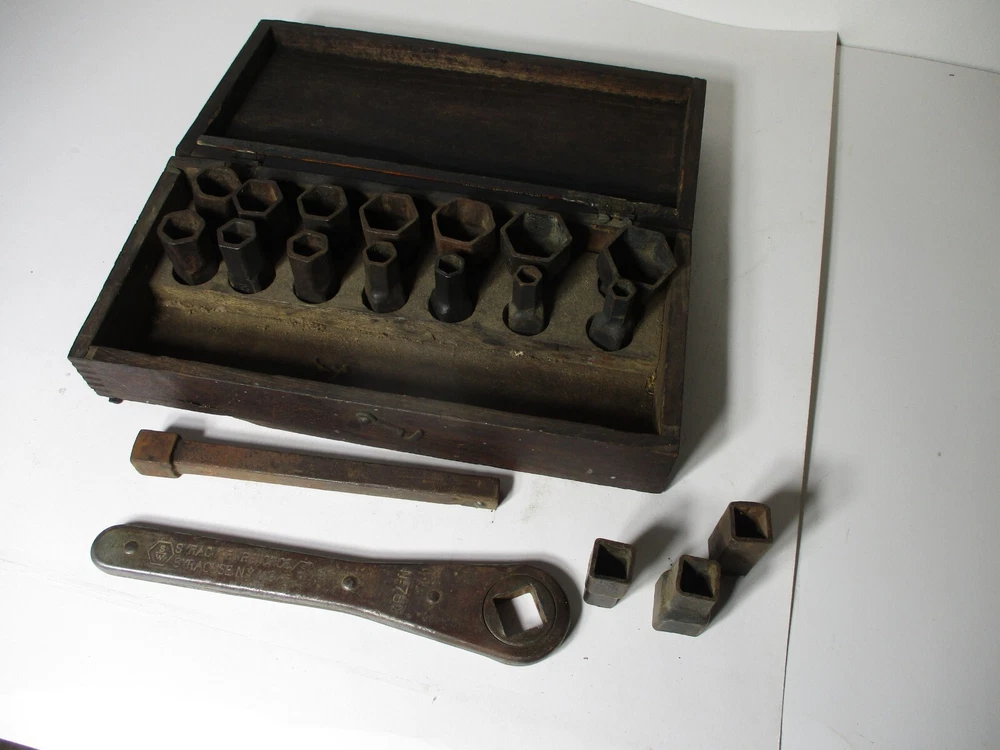 HI UP FOR YOUR CONSIDERATION IS ONE ANTIQUE SYRACUSE WRENCH CO. SOCKET SET IN ORIGINAL WOOD CASE. RATCHET WORKS AND NONE OF THE SOCKETS ARE BROKEN. PLEASE LOOK AT ALL PICTURES BEFORE BIDDING OR BUYING AN ITEM. PLEASE EMAIL ME ANY QUESTIONS REGARDING THE ITEM, I TRY TO DESCRIBE THE ITEM AS BEST AS I CAN, SO WHAT YOU SEE IN THE PICTURES IS WHAT YOU WILL GET. WILL SHIP WITHIN THE UNITED STATES ONLY, IF YOU BUY TWO OR MORE OF MY ITEMS I WILL ONLY CHARGE ACTUAL SHIPPING. THANKS FOR LOOKING, AND THE 48PARTSFORLESS TEAM LOOKS FORWARD TO YOUR PURCHASE. ZA SHELF 4