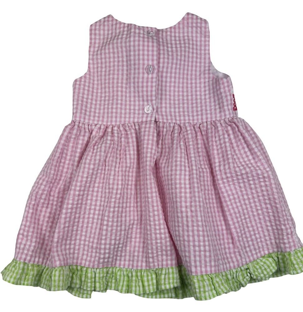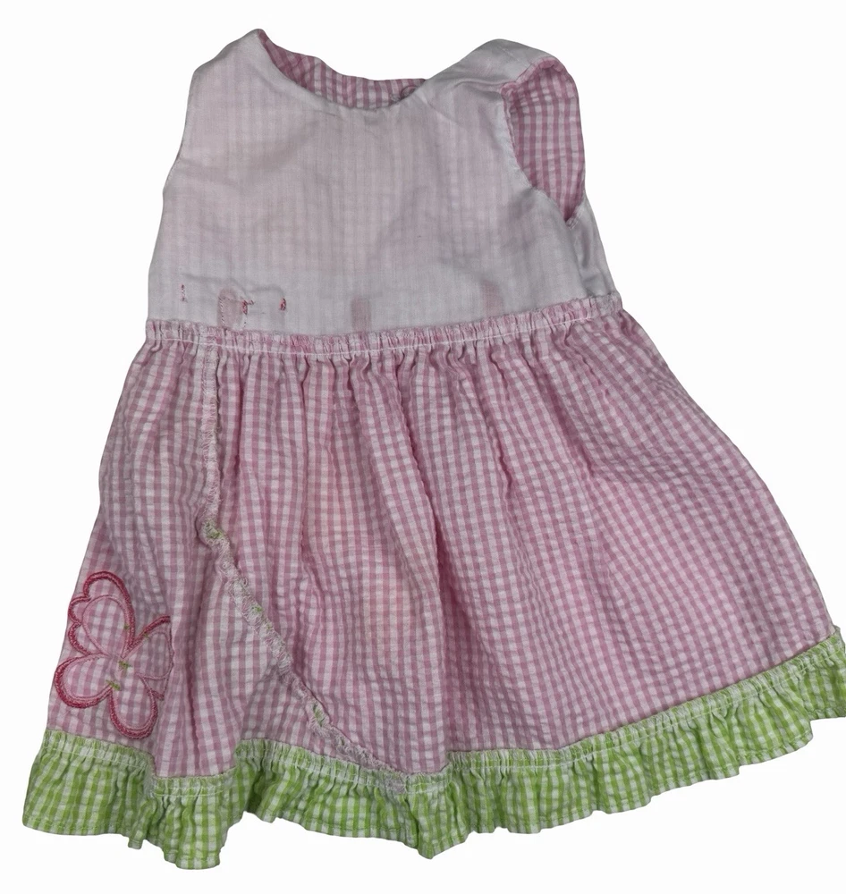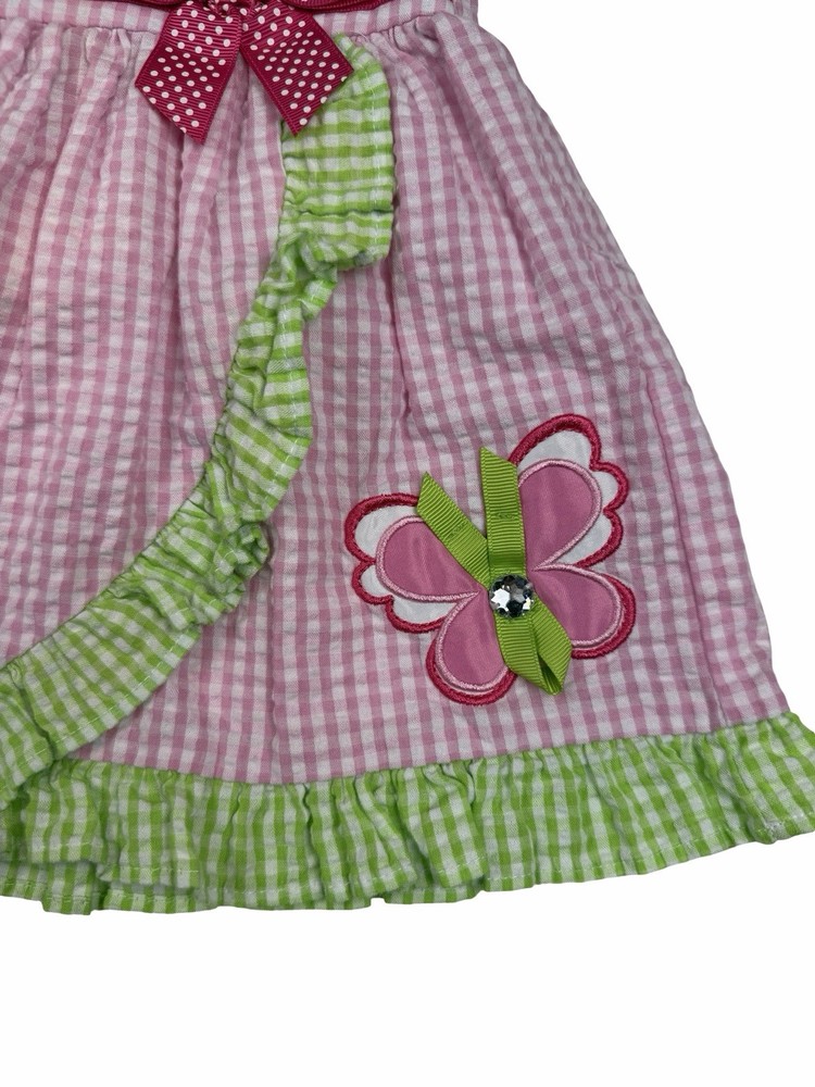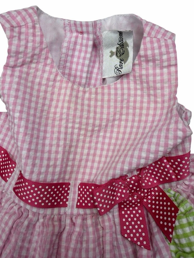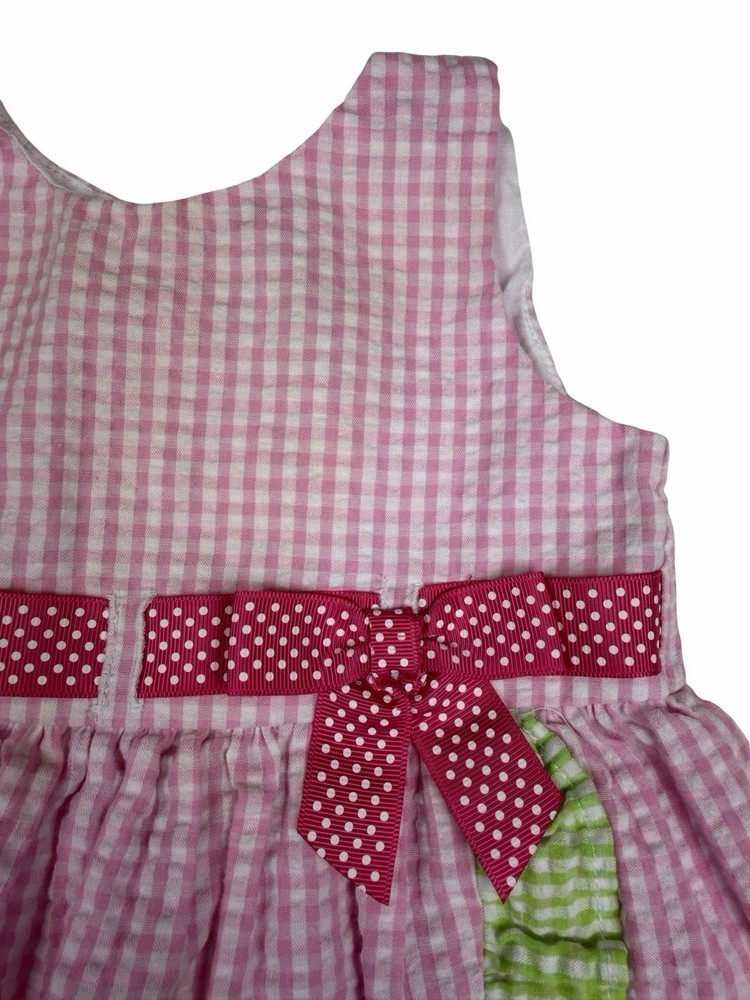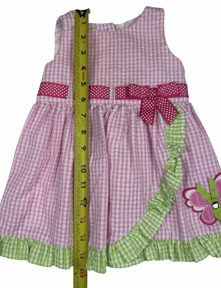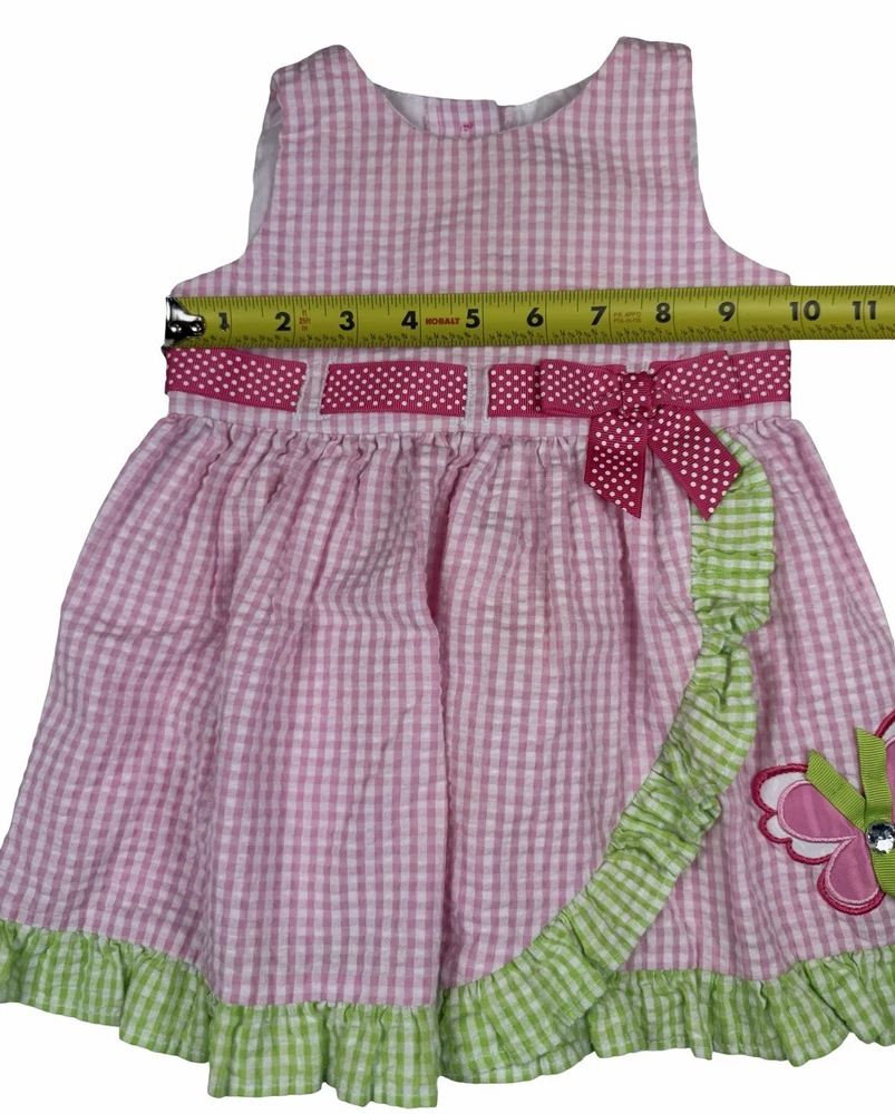 Rare Editions Pink Gingham Butterfly Dress Green Ruffle Easter Approx. 12-18M