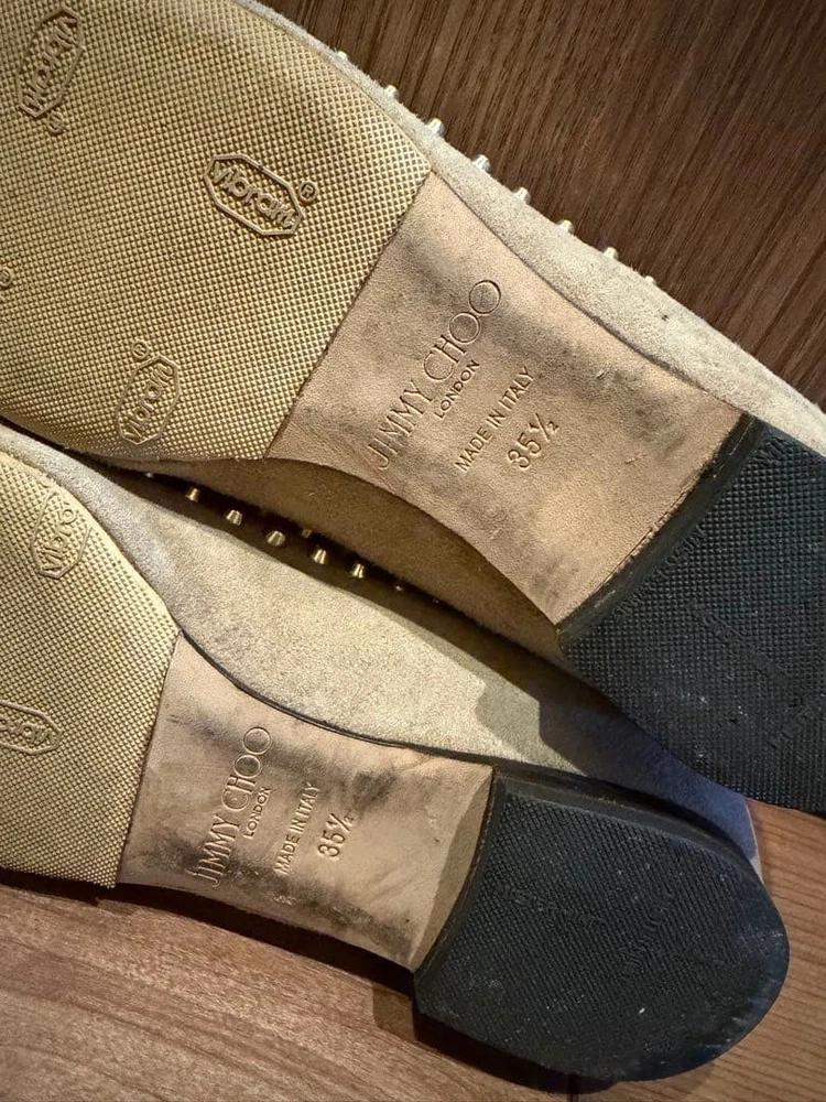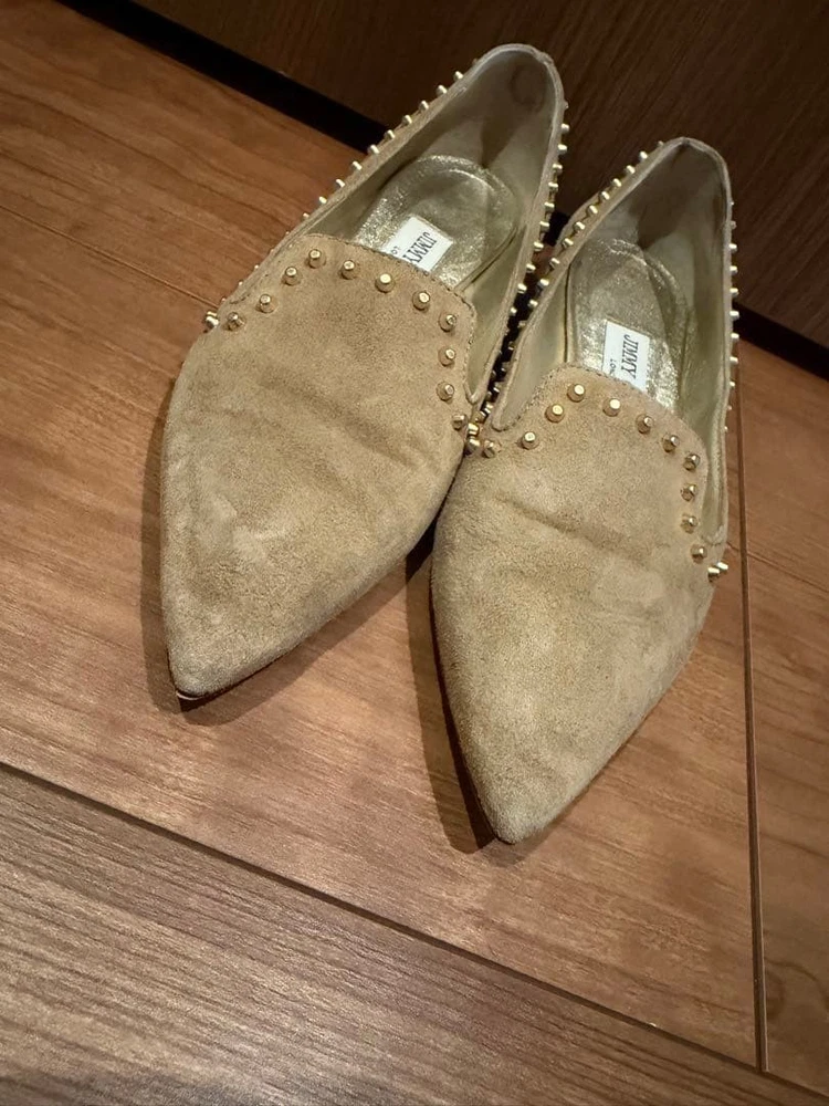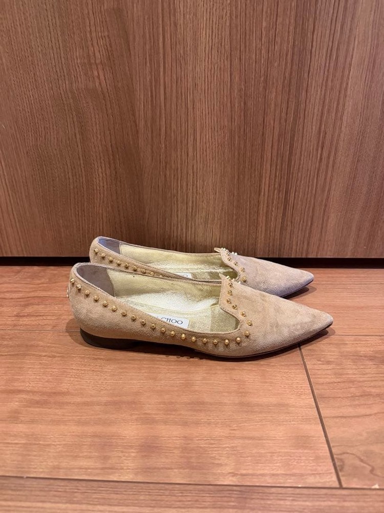 Description Jimmy Choo Studded Suede Flats. Color: Greige (Gold tone) Size: 35 1/2 (Approximately 22.5-23.0 cm / US Women's 6) Sole has been reinforced. These flats have been worn a few times and show minor signs of wear on the toe area, as depicted in the images. The overall shape remains intact, ensuring continued usability. All studs are present and secure. These stylish Jimmy Choo flats are crafted from suede and feature signature stud embellishments. The pointed toe design adds a sophisticated touch. Thank you very much for visiting my auction. Language: Japanese Please judge with a photograph. Please have a question I want to do a good deal Payment I accept PAYPAL Payoneer Please make the payment within 5 days after the end of auction. Shipping Worldwide Shipping: eBay SpeedPAK Expedited Terms of Sale If you would like to know more about this item, please contact me before bidding. Items will be sent out within 4 business days after the payment received. When there is a different problem from the indicated contents, please tell me about it within two week. I accept returns only if items did not match the description. Buyer pays return shipping. About Us Return is accepted if only the item is different from item's description. Thank you for looking!!! International Buyers - Please Note: ・Import duties, taxes and charges are not included in the item price or shipping charges. These charges are the buyer’s responsibility. ・Please check with your country’s customs office to determine what these additional costs will be prior to bidding/buying. ・These charges are normally collected by the delivering freight (shipping) company or when you pick the item up - do not confuse them for additional shipping charges. ・We do not mark merchandise values below value or mark items as “gifts” - US and International government regulations prohibit such behavior.
