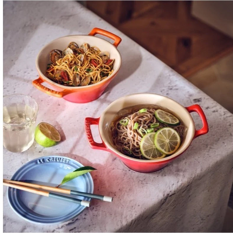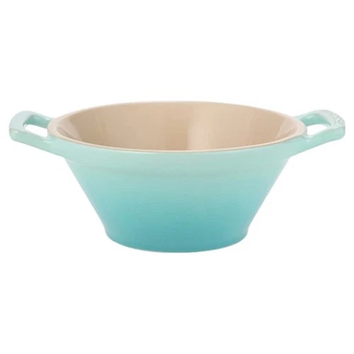 Product Description Elevate your kitchen collection with this Rare Le Creuset Stoneware Cassoulet Serving Bowl . Known for its exceptional durability and timeless design, this versatile bowl is perfect for serving everything from hearty stews and casseroles to noodles, pasta, and salads. Featuring convenient dual handles, it offers both elegant presentation and practical ease of use from oven to table. Key Features Premium Stoneware: Crafted for daily use, providing excellent heat distribution for even cooking and superior heat retention to keep food warm at the table. Versatile Design: The wide, deep silhouette with sturdy handles makes it an ideal "all-in-one" dish for baking, serving, and dining. Vibrant Color Palette: Available in iconic Le Creuset shades including Cool Mint, Orange, Dijon Yellow, Marseille Blue, and Shell Pink. Exceptional Durability: The high-quality glaze is resistant to scratches, stains, and odors, ensuring it stays beautiful for years to come. Product Specifications Dimensions: 22.2 cm x 17 cm x 7.5 cm Temperature Resistance: Safe from -20°C to 260°C Compatibility: Safe for Microwave, Oven, and Freezer use. Important: NOT suitable for Induction or Direct Heat (stovetop). Important Note on Handmade Quality All Le Creuset stoneware products are meticulously handmade . Due to the artisanal manufacturing process, minor variations such as bubble formations, pinholes, small protrusions, or slight color/thickness variations may occur. These are not defects but rather unique characteristics that testify to the authentic, handmade nature of the product. Customs and duties: For buyers in the United States: Import duties and taxes are included in the item price or shipping cost. Items shipped to the U.S. are sent under the Delivered Duty Paid (DDP) method, which means all import-related charges are prepaid. You don’t need to pay any additional fees when your order arrives. For buyers outside the United States: Import duties, taxes, and charges are not included in the item price or shipping cost. These charges are the buyer’s responsibility.