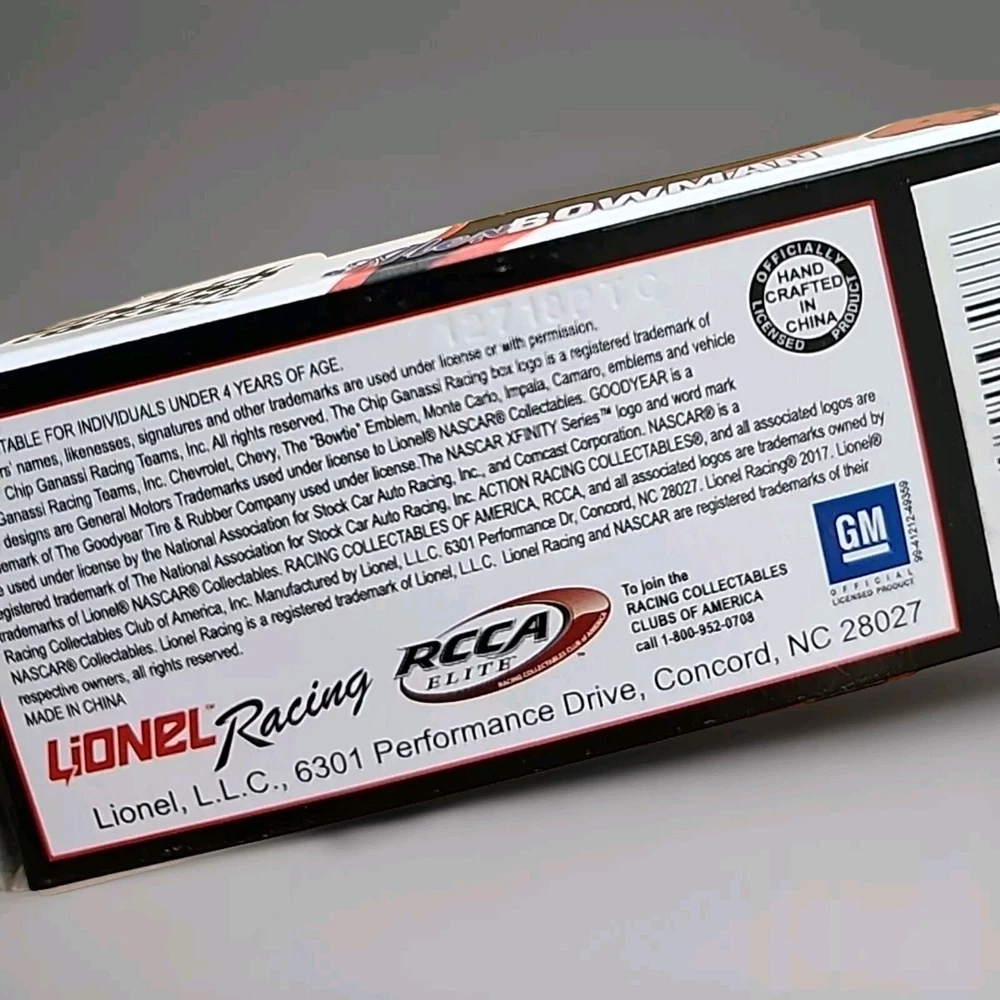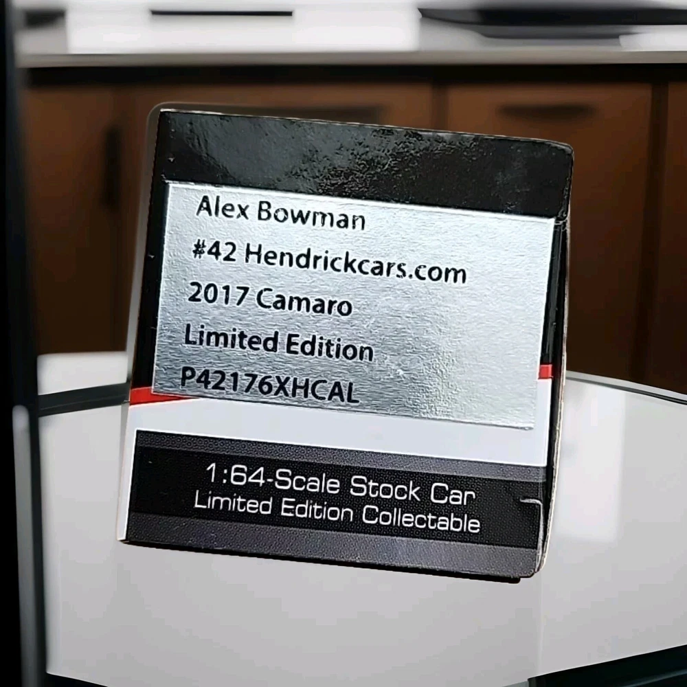 Brand New SEALED NASCAR Each diecast is INDIVIDUALLY numbered by NASCAR (no 2 cars have the same #) Year 2017 Chevrolet Camaro Driver Race Team Alex Bowman 42 Hendrickcars.com Diecast Scale 1/64 Promo Limited Edition PTC Item # P42176XHCAL * ACCORDING TO MY RESEARCH THIS IS A VERY RARE DIECAST* This is a very rare 1/64 promotional diecast only offered to employees and sponsor in 2017!! It was produced on the 2017 cup body even though this car ran in the Xfinity series that year. Shipping FREE WITH USPS FIRST CLASS